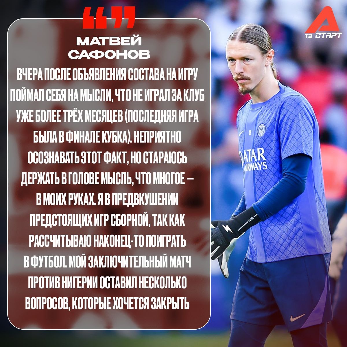 😔🧤 Три месяца без игр за «ПСЖ» Грусть Матвея Сафонова. Финал Кубка Франции против «Реймса» пока остаётся для него последним в составе парижан. Теперь нужно реабилитироваться в играх сборной за ту ошибку с Нигерией, подчеркнул голкипер в своём телеграм-канале. Когда Луис Энрике даст новый шанс Сафонову? 🤔 🛒 Наше приложение в Google Play 💙 Наше приложение в RuStore 🛒 Наше приложение в App Store