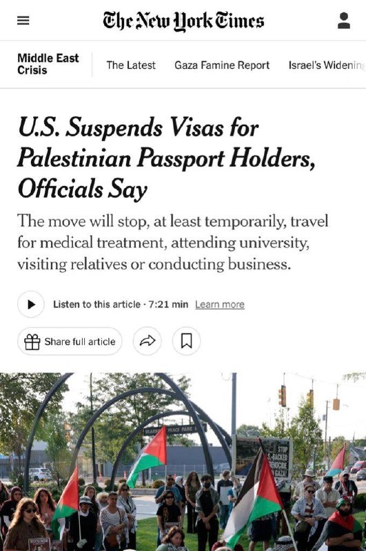 Trump SUSPENDS visas for Palestinian passport holders — NYT Travel, studies, medical treatment, business, and family visits HALTED temporarily Exemptions for dual nationals or those who already have visas
