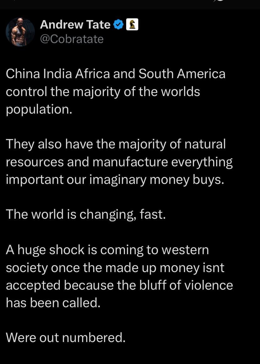 ‘HUGE SHOCK is coming to western society’ — Andrew Tate ‘World is changing FAST’ as Global South flexes its muscle Claims the bubble of ‘imaginary money’ is going to burst