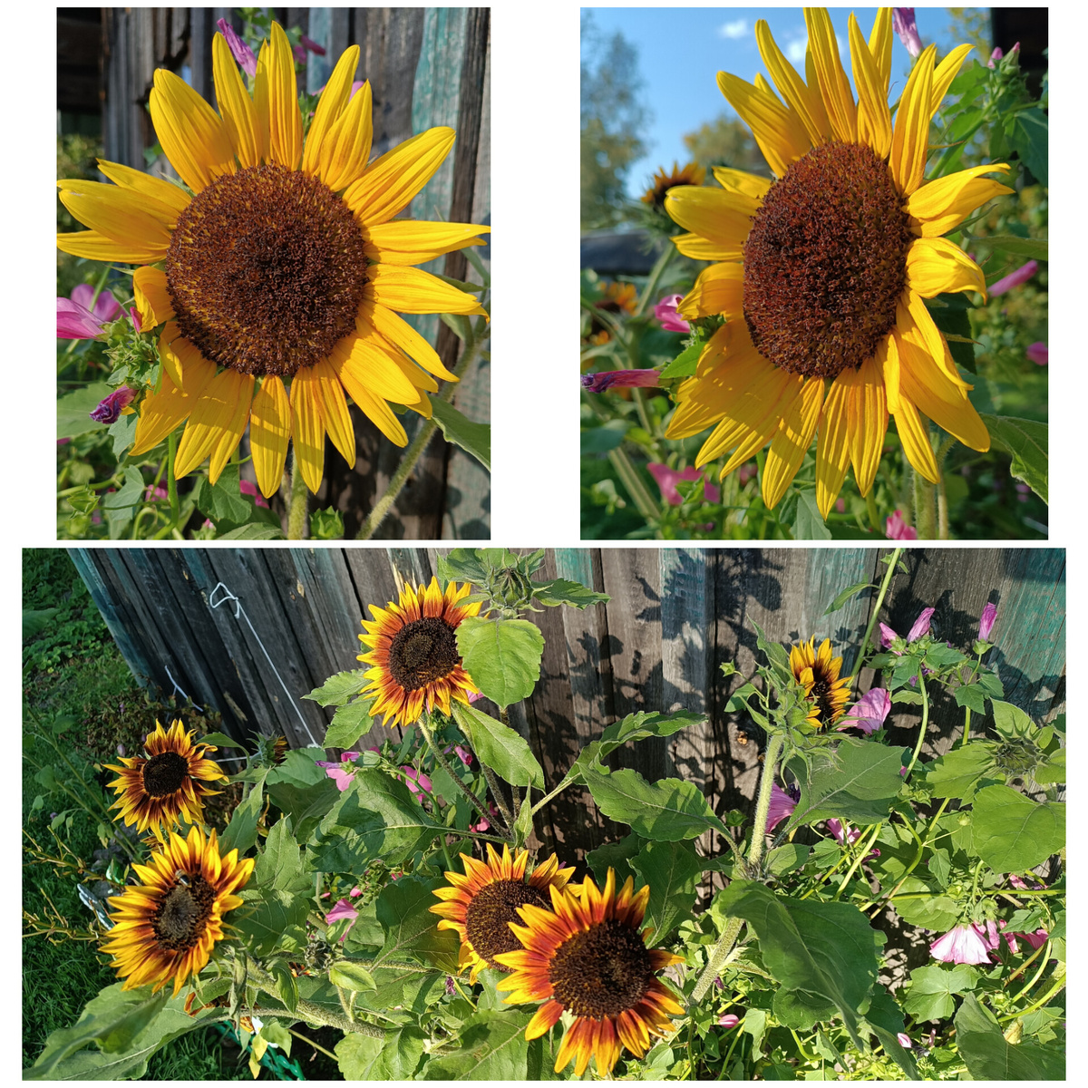 Вчера (31 августа) сфоткала подсолнухи на даче, которые посадила свекровь. И у меня промелькнула мысль: а что если эти подсолнухи подарить учительнице на 1 сентября?! Было бы оригинально. Но сразу же я отбросила эту мысль, не я сажала эти подсолнухи, поэтому и не мне их срывать.