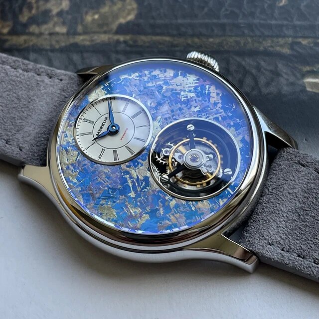 Данная модель представлена уже в современном 42-миллиметровом в диаметр и 11-миллиметровом в толщину корпусе с крупной заводной головкой, а дизайн в общем схож чертами с H. Moser & Cie. с турбийоном и маленьким циферблатом.