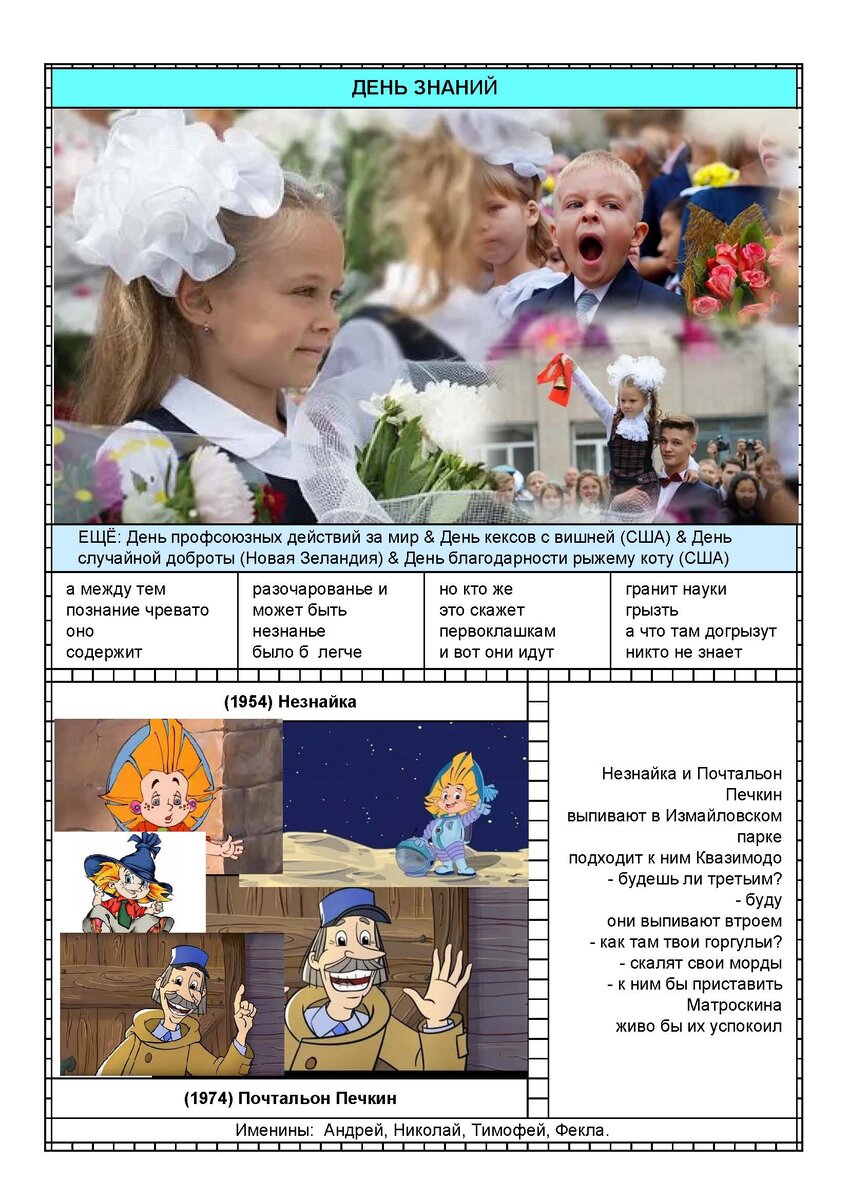 Календарь 1 сентября