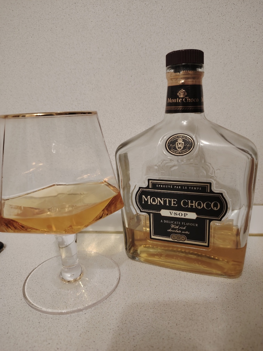 - Чрезмерное употребление алкоголя вредит вашему здоровью. Алкоголь противопоказан детям и подросткам до 18 лет, беременным и кормящим женщинам, лицам с заболеваниями центральной нервной системы, почек, печени и органов пищеварения. Ave, квириты! Сегодня на обзоре коньяк пятилетний «Monte Choco». Производитель ООО «ССБ», Московская область. Не самый лучший завод, который выпускает далеко не самую лучшую продукцию. Сайта нет, в итоге просто информация с сайта продавца. Коньяк обладает мягким, насыщенным, гармоничным вкусом с тонами шоколада, древесины, табака и продолжительным, приятным послевкусием с нюансами ванили, фруктов и пряностей. У коньяка богатый аромат, раскрывающийся нотами цветов, табака и шоколада. Коньяк насыщенного янтарного цвета. Ну ладно, проверим. Кстати, в линейке есть ещё другие напитки, но все называются «шоколадная гора». Состав: дистилляты коньячные, выдержанные в контакте с древесиной дубы не менее пяти лет, вода питьевая исправленная, сахарный сироп, пищевая д