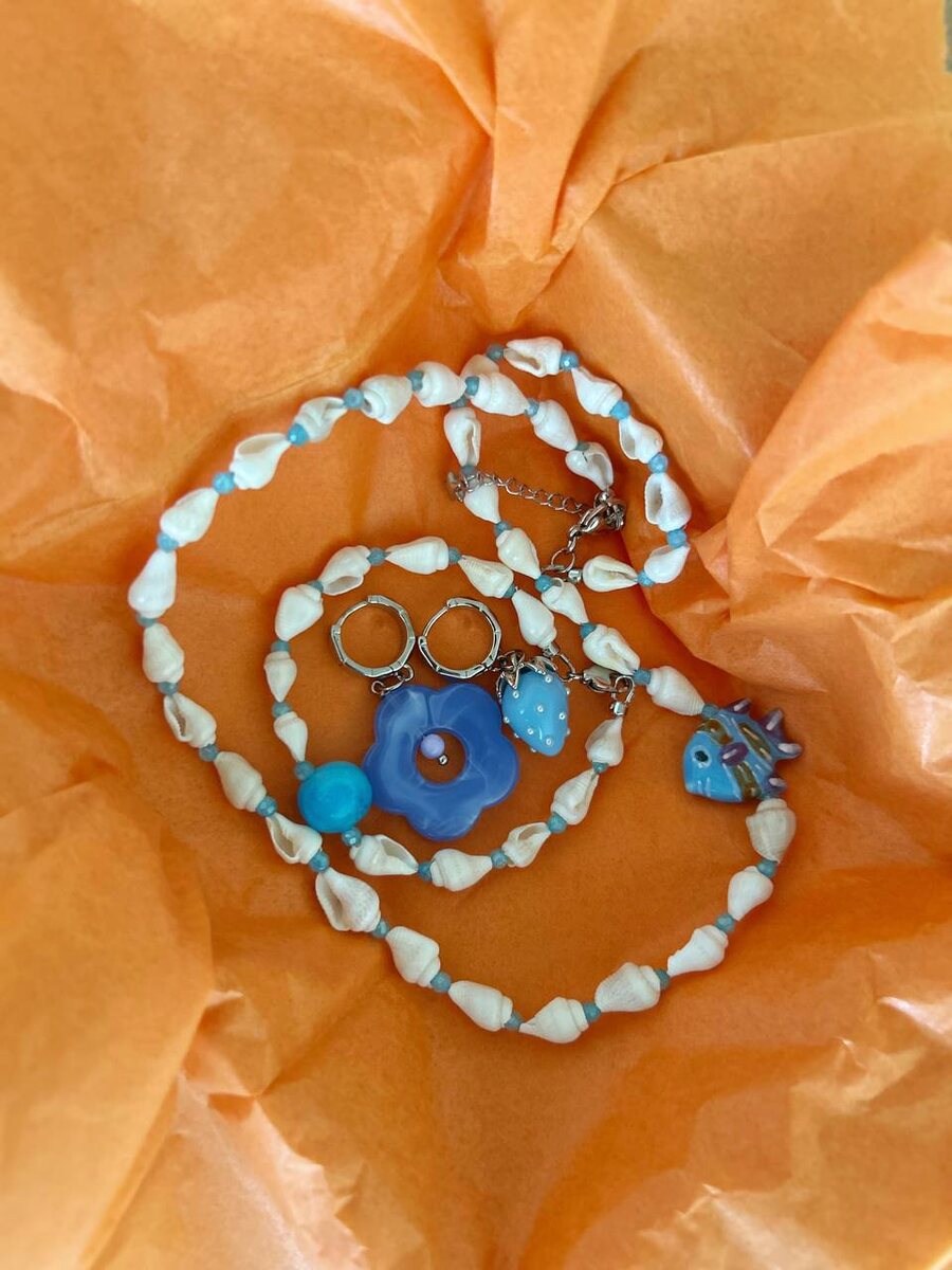 Сет с ракушкой и оттенками океана🐳🐳🐳 Чокер с ракушкой, рыбкой из керамики и шпинели-2500 руб Sale: 2200руб🔥 Браслет с ракушками и агатом-1500 руб Sale: 1100руб🔥 Серьги с клубникой и цветком-2500 руб Sale: 1900руб🔥 Весь сет: 5000руб🔥 👉 Как заказать? · Напишите нам в Директ · Или в WhatsApp/Telegram по номеру: +7 (925) 033-61-01