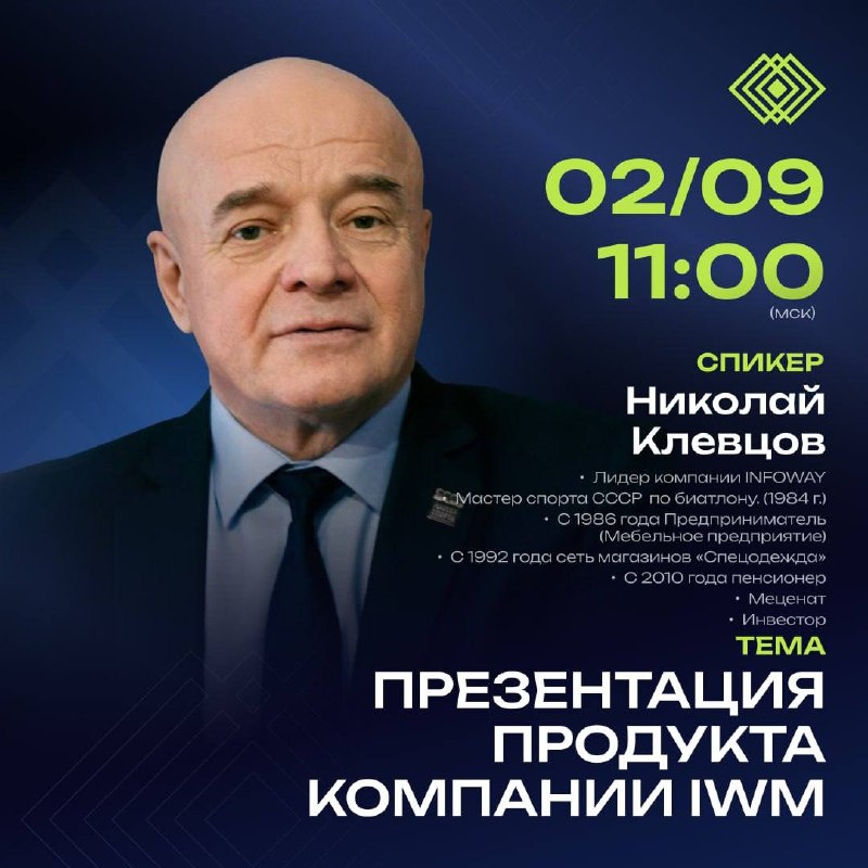 🍁🔥Ждём вас 2 сентября на презентации продукта компании! Время: в 11:00 (МСК) СПИКЕР: Николай Клевцов Взгляд на заработок с #IWM от предпринимателя, который в бизнесе с 1986 года. Ждем всех, кто хочет зарядиться бодростью и мотивацией! Ссылка: https://us06web.zoom.us/j/2116731674?pwd=xahqmhZLmGsNMAcfVYG8sNdiNWlLRY.1