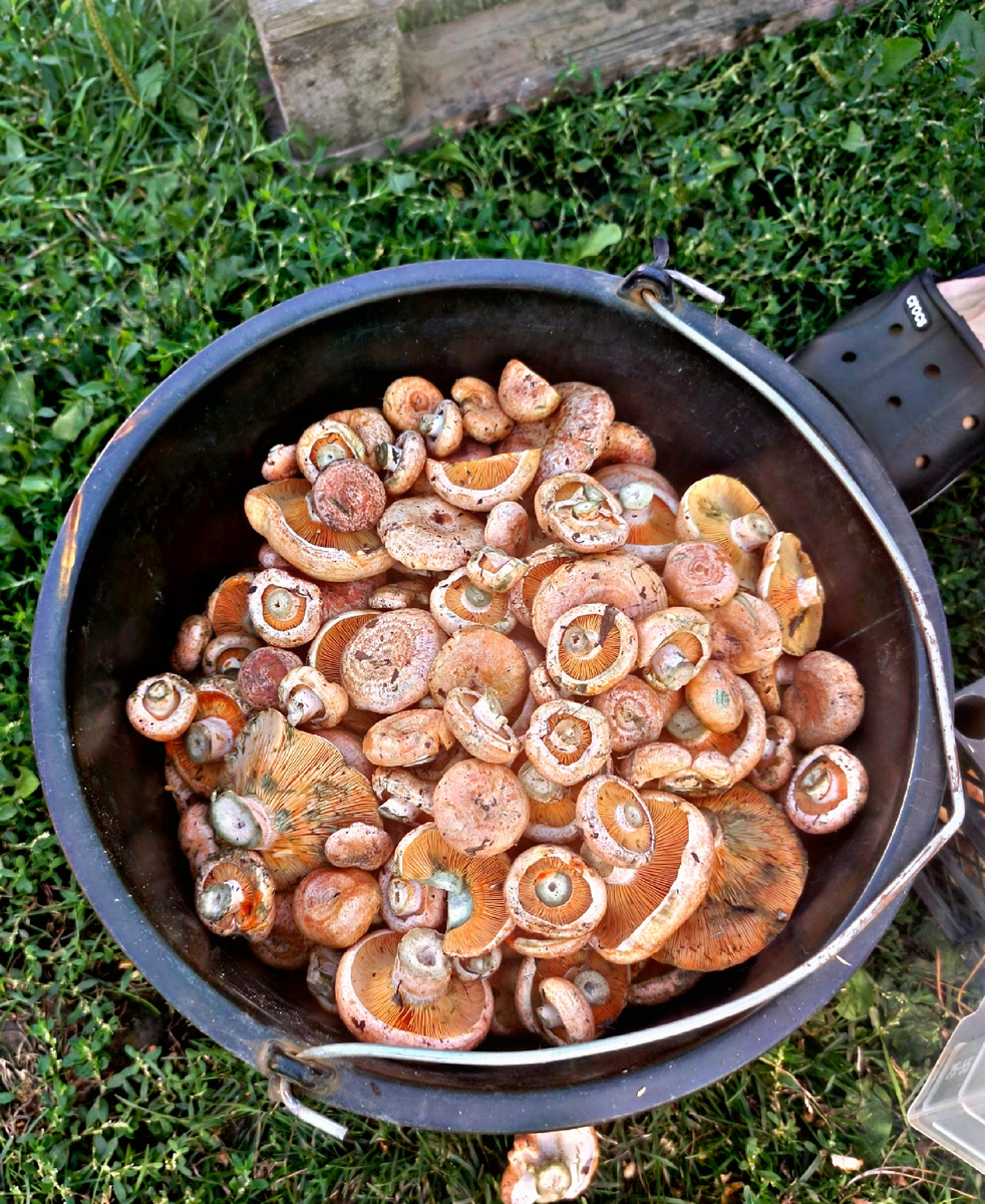 Видимо я подошла к возрасту, когда стало тянуть к засолкам)) В этом году прям рекорд какой-то. 10 банок помидоров, 13 банок грибов и 6 банок арбузов)) В этой статье расскажу рецепт засолки рыжиков, может кому интересно)) У нас было 12 кг рыжиков. Рецепт: -замочить грибы в холодной соленой воде на 30 мин( для того, чтобы вышла вся живность, типа червяков) -слить соленую воду и промыть грибы от грязи и пыли, после хорошенько сполоснуть. -поместить грибы в большую кастрюлю и варить около 15 мин ( после закипания) Добавить в кастрюлю соль по вкусу и уксус. Пока грибы варятся мы приготовили банки по 0.65 л, промыли их и простерилизовали. На дно каждой банки положили лавровый лист, перец горошком и нарезали две дольки чеснока После того, как грибы проварились мы начинаем заливать их в банки с помощью половника и закрываем плотно крышкой. Далее накрываем банки тряпкой, либо полотенцем и оставляем до остывания. П отом убираем в погреб, либо холодильник)) Грибы маринуются быстро, долго ждать
