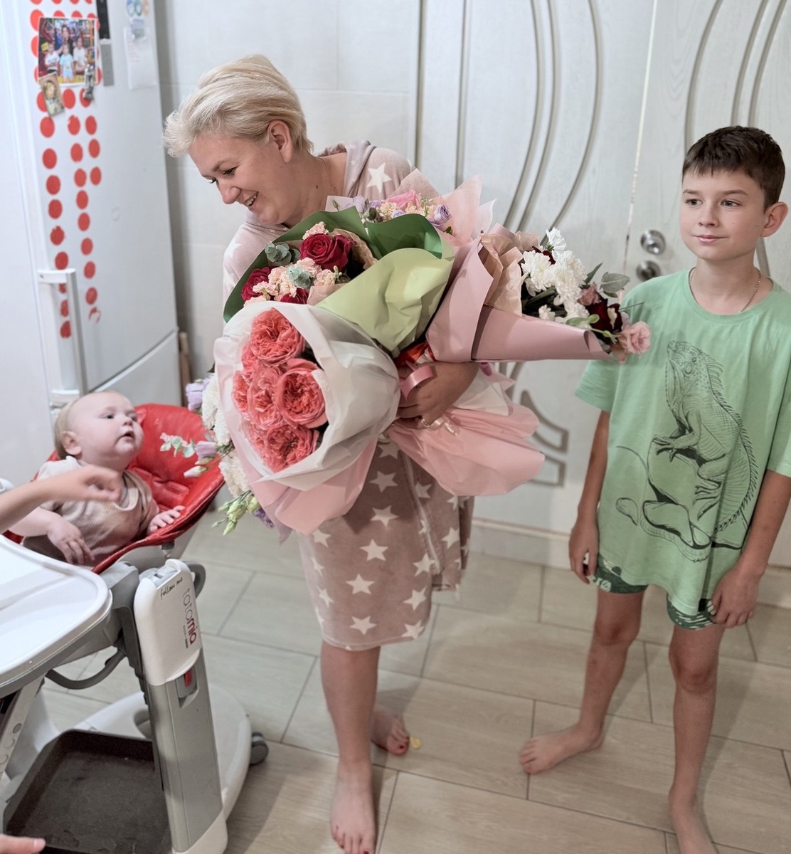 Сегодня я села на лавочку во дворе и думаю: ехать — не ехать в город за цветами. Если ехать, то это и время, и силы (которых после Воронежа нет от слова совсем). Потом нашла фирму в Мичуринске, которая доставляет цветы на дом, написала им в чат, и вуаля, через два часа пять красивейших букетов у меня в руках. Букетики выбирали сами дети по фото на сайте.