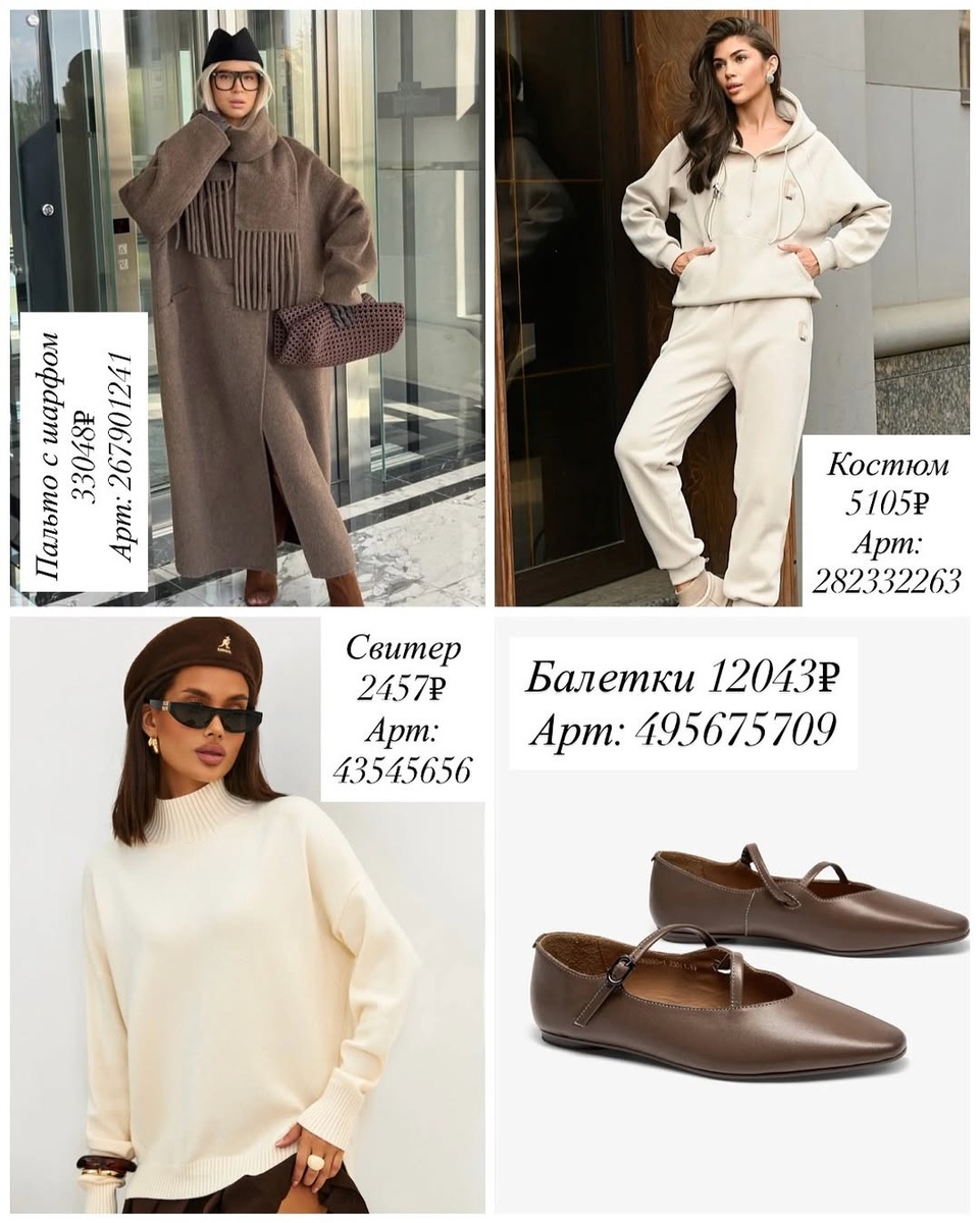 Осень — лучший сезон для спокойной элегантности: мягкие фактуры, чистые линии, благородные оттенки какао, молока и графита. Я разобрала для вас три коллажа и собрала строго по порядку все позиции с фото — с описаниями, ценами и моими стилистическими подсказками. Сохраняйте в виш-лист — это база, из которой легко собрать десятки образов.