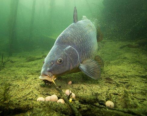 Карп — всеядная рыба, которая может питаться как растительной, так и животной пищей. Его рацион зависит от сезона, температуры воды и особенностей водоёма. Правильный выбор наживки и прикормки может значительно повысить шансы на успешную ловлю. Питание карпа 1. Растительная пища: Зерновые: кукуруза, пшеница, ячмень, горох. Перед использованием зерна запаривают или ферментируют для улучшения усвоения. Бойлы: специальные шарики из теста с добавлением протеина и ароматизаторов (ваниль, чеснок, фрукты). Подходят для ловли крупных особей. Жмых и хлеб: используются в сочетании с основным кормом. 2. Животная пища: - Мотыль, опарыш, черви — особенно полезны весной и осенью для повышения питательности рациона. - Рыбная мука и моллюски — источники протеина и жирных кислот. 3. Комбинированные корма: - Специализированные корма с содержанием белка 30–38%, включающие рыбную муку, злаки и витамины. - Универсальные корма для сельхозживотных, разбавленные водой до консистенции т