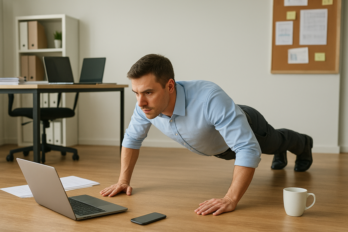 А вот выполнение упражнений в течение дня позволяет подзаряжаться энергией прямо по ходу работы.