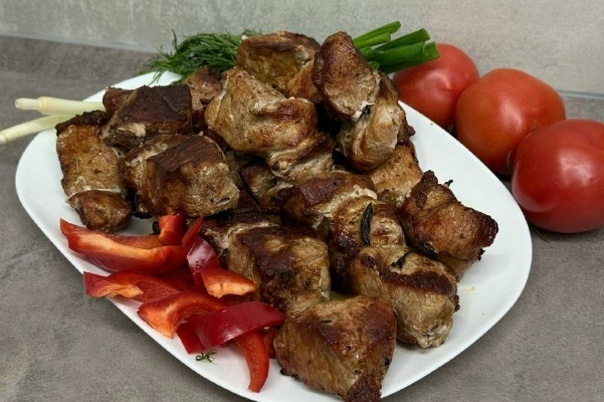 - Правильная нарезка: Режьте мясо на кубики размером 4-5 см. Слишком мелкие высохнут, крупные не промаринуются.