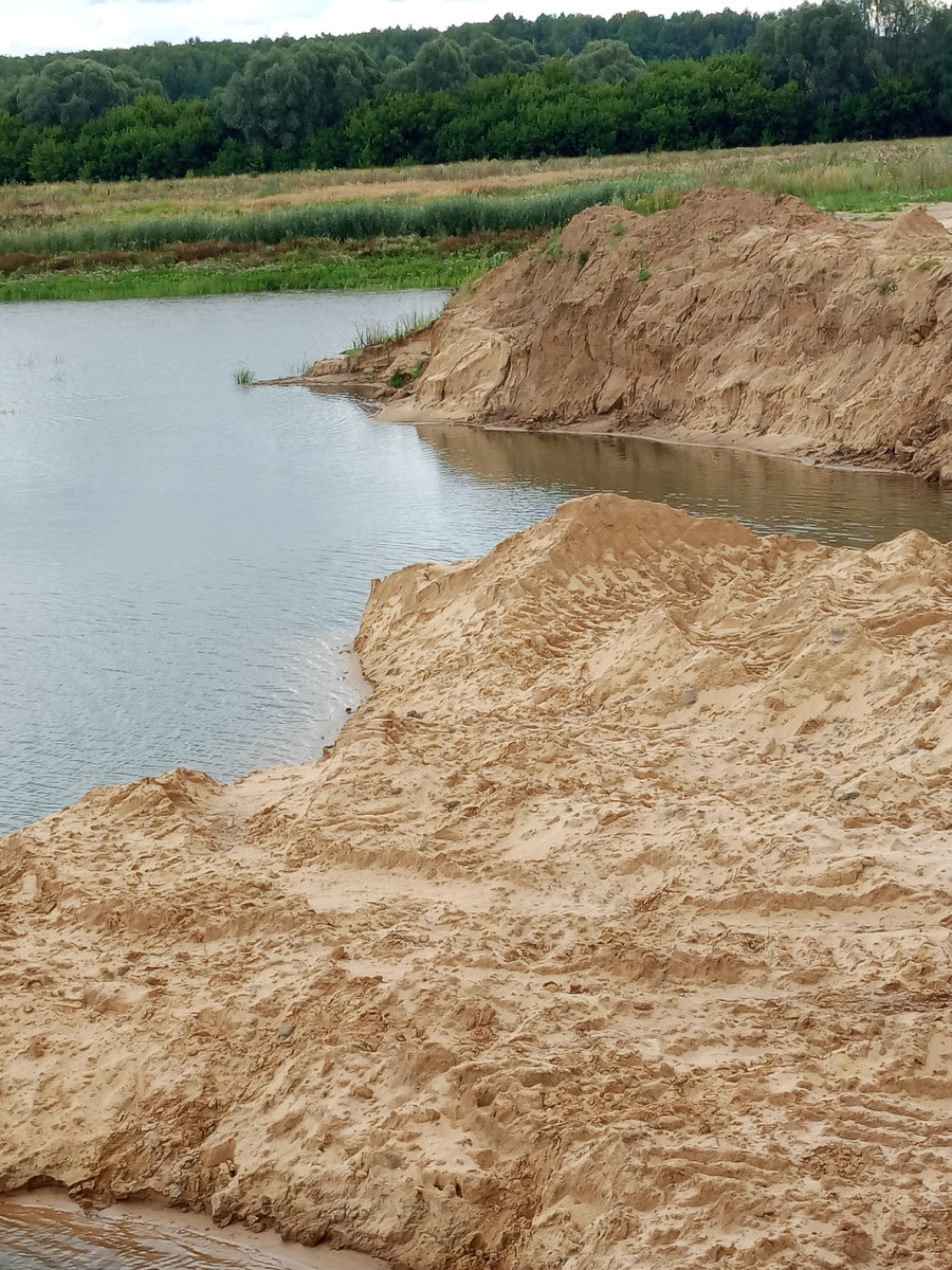 После того как берут песок, щебень, камни остаются котлованы, которые заполн яются водой, начинают селится птицы, в озере появляется рыба. И вот прекрасный, тихий островок для отдыха на природе...