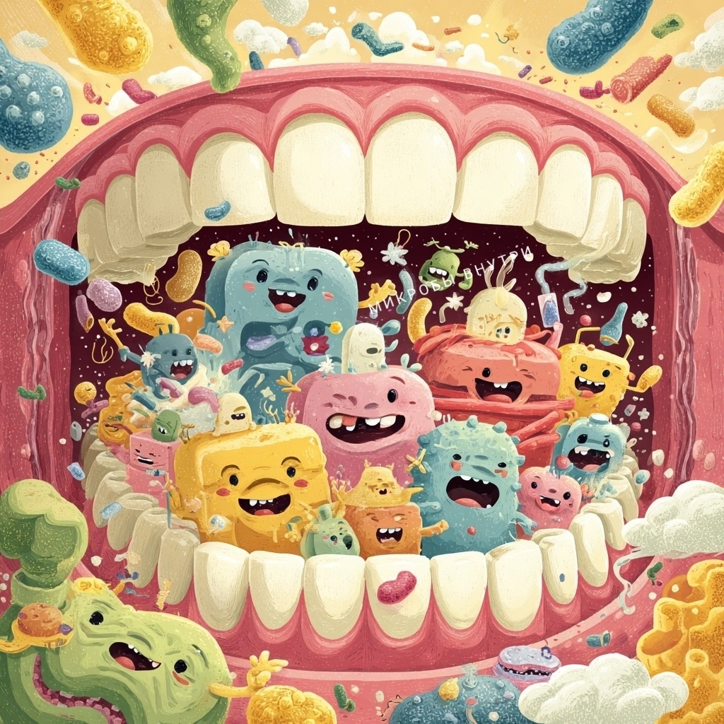 Учёные подсчитали, что во рту могут жить 700 разных видов микробов, из которых львиная доля - это бактерии. У некоторых во рту могут жить и грибки, и простейшие. Питаются ротовые жители слюной и десневой жидкостью. Здоровье человека-хозяина и его пищевые привычки тоже влияют на микробиоту полости рта. Кислотность во рту, доступность питательных веществ, поверхности зубов и дёсен, слюна и прочие жидкости также определяют, кто живёт во рту.