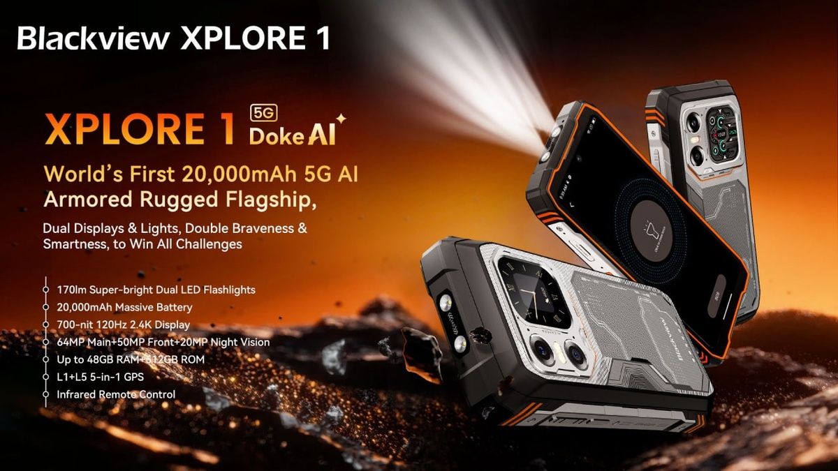Компания Blackview готовит к запуску новый флагман XPLORE 1. Это первый защищённый 5G-смартфон с огромной батареей 20000 мАч, двойными экранами и встроенным AI-ассистентом.