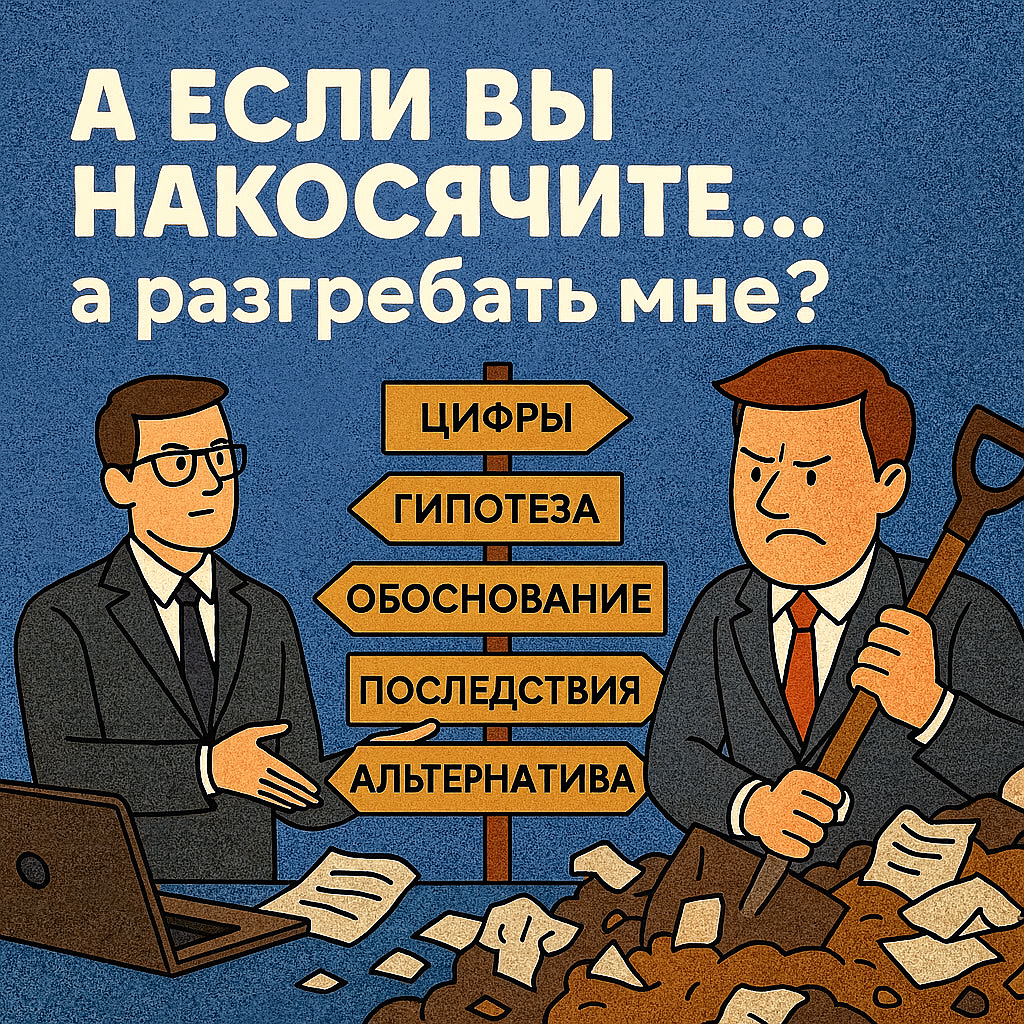 Вообще хороший вопрос, да. Он почти всегда звучит не напрямую, но его слышно между строк: — а если цифры окажутся кривыми? — а если я приму решение на основе ваших расчётов, а оно окажется ошибкой? — а если всё пойдёт не так, а отвечать придётся мне? Да, хочешь-не хочешь, а отвечать придётся, потому что ты собственник, и в любом случае именно ты остаёшься у руля. Но вот в чём важный нюанс: Мы не подкидываем тебе необоснованных идей, не даём просто мнения, не говорим «ну, затести, мб сработает». Мы работаем следующим образом: — Цифры — Гипотеза — Обоснование — Последствия — Альтернатива В итоге у тебя на столе появляется не один вариант, а несколько, и ты уже сам выбираешь, что подходит под твои планы. Финдир не жмёт на газ, он просто заранее говорит: «Тут яма, тут пробка, тут поворот, а вот тут лучше вообще не ехать». Ты не делегируешь управление, ты делегируешь расчёт, и это важнейшая разница. А если вдруг где-то сомневаешься, то спокойно приходишь и говоришь — хочу ещё раз взглянуть,