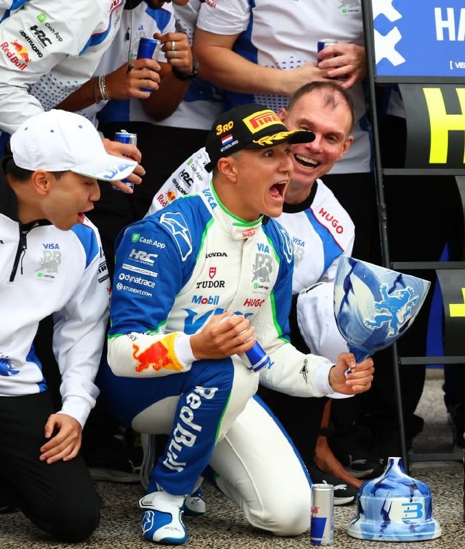 😅 От первого в карьере подиума в «Формуле-1» до похода в мастерскую! Пилот RB Исак Хаджар умудрился попасть в неловкую ситуацию после Гран-при Нидерландов «Формулы-1», где стал третьим. Дебютант королевских гонок впервые попал на подиум. После награждения он стал позировать с трофеем в окружении своей команды. Когда он ставил кубок, его нижняя часть просто отломилась. @russian_rt_sport