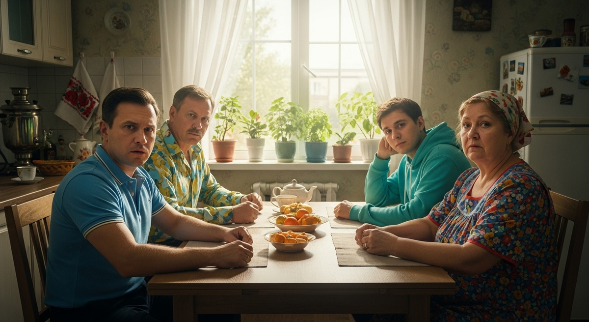 Роман медленно откинулся на спинку стула. Это был не дурной сон. Это был семейный обед в родительском доме, куда его вызвонили под предлогом «серьезного разговора». Он-то думал, может, со здоровьем у кого проблемы. А проблема, оказывается, вот она — сидит напротив, в застиранной футболке и с директорскими амбициями.