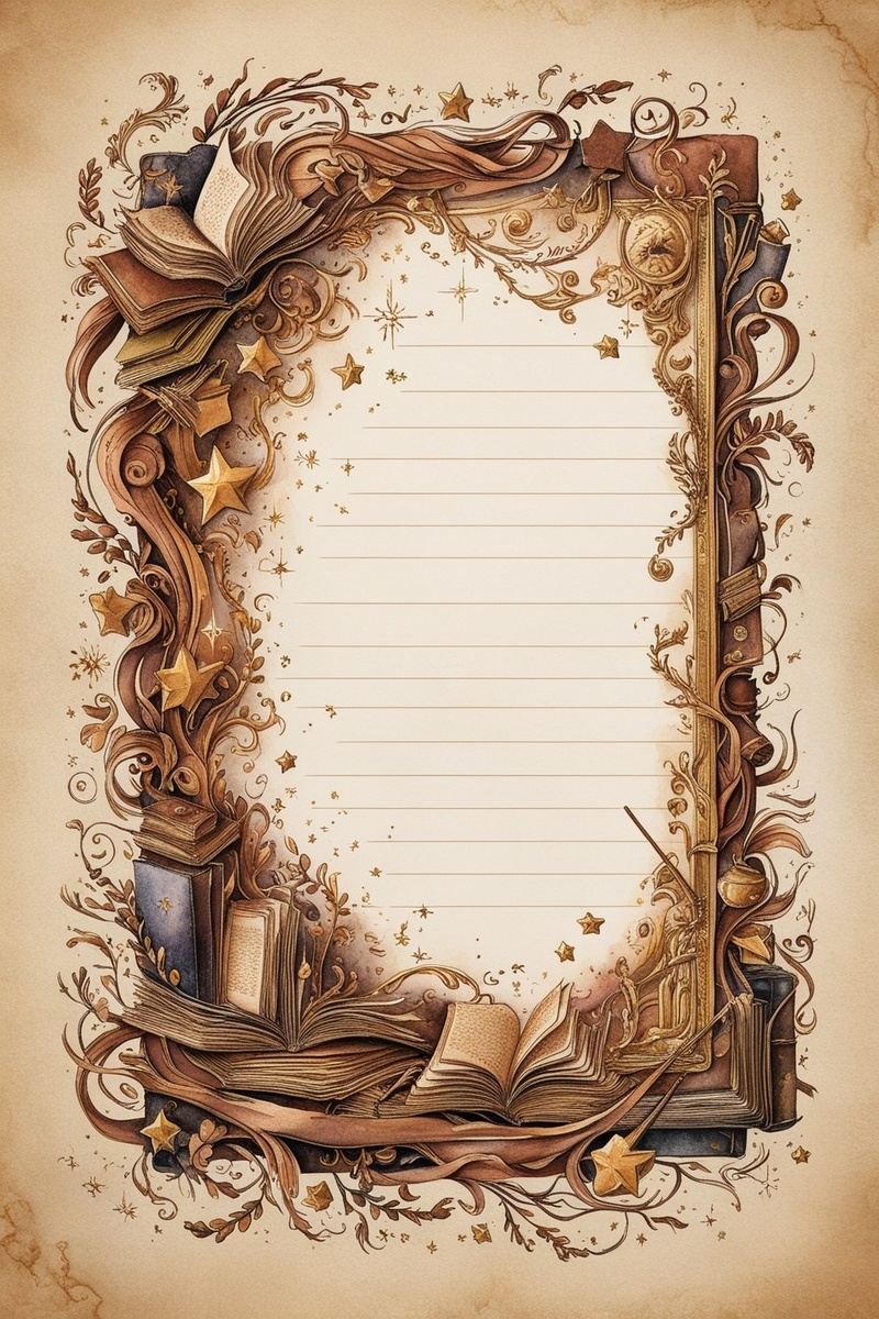 Пергамент, украшенный замысловатой рамкой из завитушек, листьев, звезд, книг, волшебных палочек, взмахов и изгибов. Нейросеть: Leonardo. Preset: Illustrative Albedo. #цифроваяживопись #нейросеть #нейроарт #цифровоефото #рисунок #нейрофото #арт #артыотнейросетей #DigitalDreamscapes #digitalart #leonardo #иллюстрация #звезды #нейроSD #завитушки #aiartwork #background #скрапбумага #ai #рамка #бумага #скрап #linedpaper #акварель #длязаписи #листья #пергамент #идеи