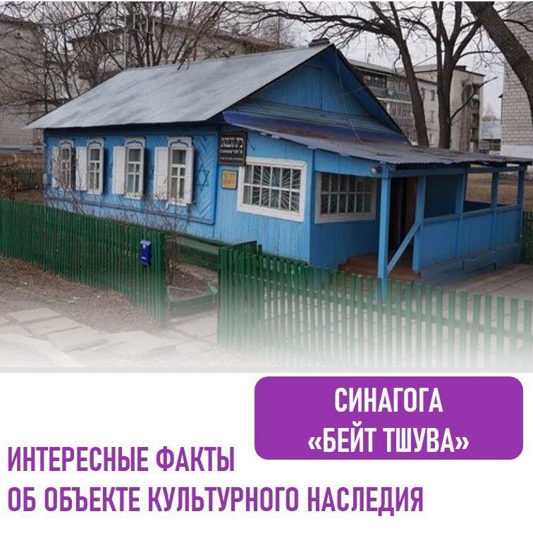 Это действующая синагога, в Биробиджане ее называют «старой синагогой». Ее достаточно часто посещают туристы, в том числе иностранцы, чтобы познакомиться с историей первой синагоги нашего города.