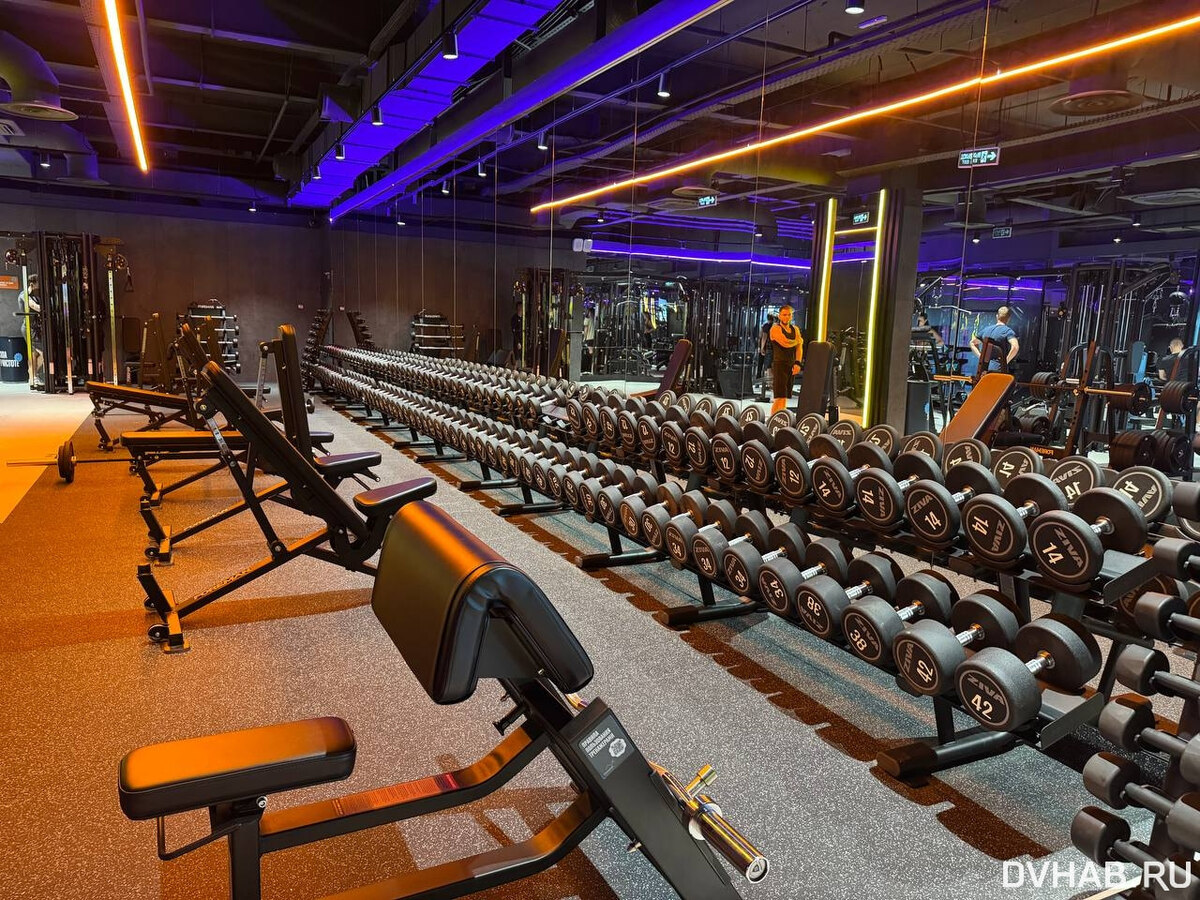 Новый зал DDX Fitness открылся в торговом центре «Пихта». Региональный филиал входит в состав федеральной сети фитнес-клубов, очень популярной в Москве, Санкт-Петербурге и других городах. В честь запуска в Хабаровске клуб проводит день открытых дверей: три дня, в том числе и сегодня, жители города могут бесплатно тренироваться безлимитное количество времени, а также посетить спа-зону, которая здесь имеется. Корреспонденты нашего сайта не могли упустить возможность первыми оценить новое пространство для тренировок. Мы посетили зал и вместе с хабаровским тренером опробовали разнообразные тренажеры, а также познакомились с уникальной концепцией клуба. Первое, что бросилось в глаза, — это атмосфера. Помещение решено в трех основных цветах: черном, оранжевом и фиолетовом. Такой дизайн выглядит очень стильно и современно. Наш обзор мы начнем с раздевалок. Они довольно просторные, с огромным количеством зеркал, зоной, где есть много фенов и можно привести себя в порядок после тренировки. Внут