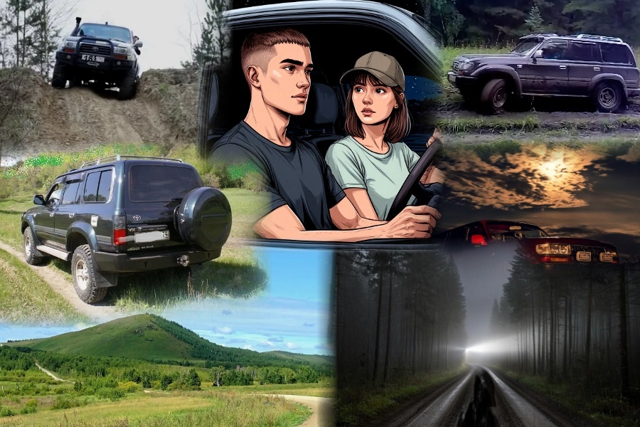 Следы между сопок петляли, крохотный ручеёк пересёк, уклоны то в одну, то в другую сторону, длинные, но не глубокие ямы, по которым , как по большим волнам «Крузер» шёл, ну точно крейсер. Примерно километров около пятнадцати я по такой пересечённой местности проехал. Темнеть быстро начинало, но фары я пока не включал, решил до последнего тянуть. Минут через 20 дополнительные включил на «кенгурятнике». Два мощных, как у прожектора, луча далеко били. «Только бы колесо не проколоть! «Крузак» машина надёжная, главное колесами ничего не поймать!... Давай братан, вывози! А то хрен знает, что и с тобой будет, если те рожи бандитские догонят!» Я даже не сомневался, что те в «Марке» не солярку нам хотели продать, другие у них планы насчёт нас и джипа были.