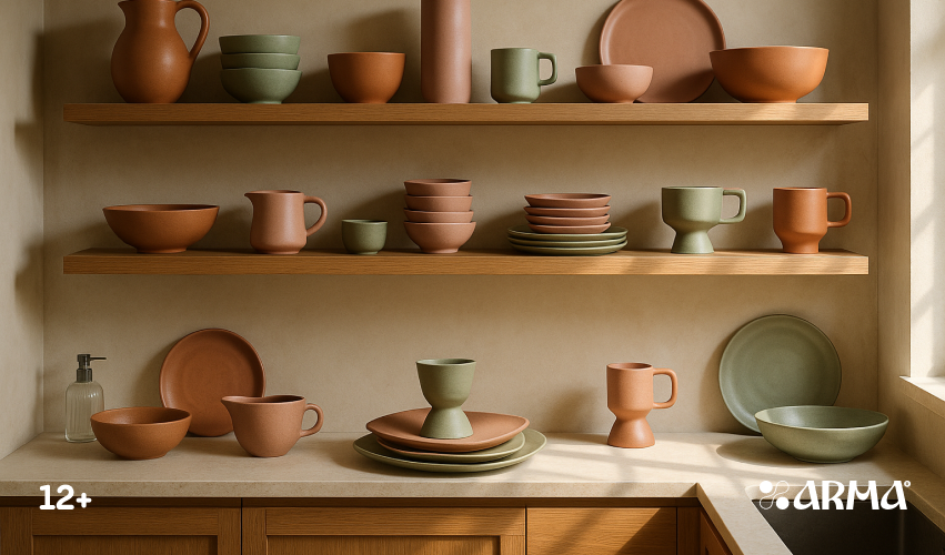 Современная посуда не только выполняет свою основную функцию, но и становится важным элементом дизайна интерьера. Она может задавать настроение в пространстве и отражать индивидуальность владельцев. Тренды в дизайне посуды отходят от скучных белых кружек и стандартных круглых кастрюль, предлагая яркие цвета и оригинальные геометрические формы. Это делает процесс готовки и сервировки более эстетически привлекательным и интересным. Цвет в посуде становится важным инструментом для создания акцентов на кухне. Вместо привычных красного и синего сегодня в моде сложные, глубокие и благородные оттенки: терракотовый, цвет морской волны, пыльный розовый, оливковый, горчичный и насыщенный шалфейный. Особенно востребована палитра, вдохновленная природой: землистые тона, оттенки глины, песка и зелени. Такая посуда не только выполняет функциональные задачи, но и превращается в самостоятельный арт-объект на полке или обеденном столе. Яркий чайник или стопка разноцветных салатников мгновенно оживляют