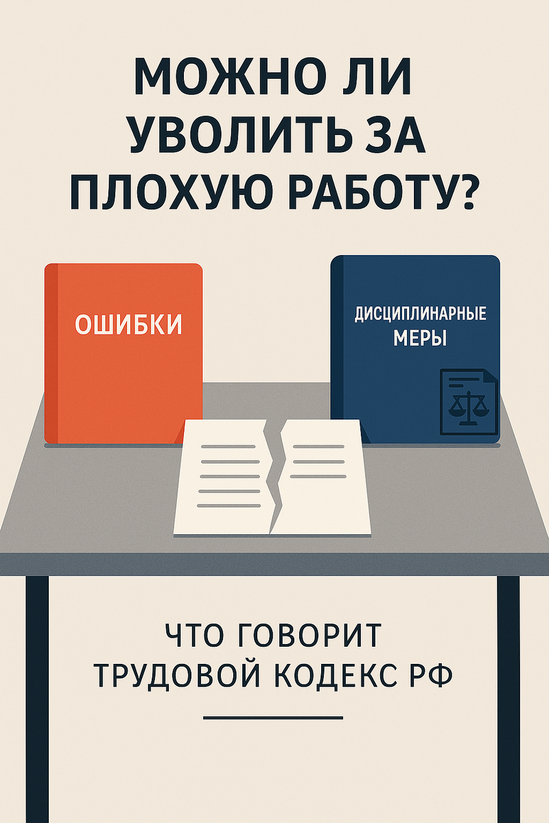 «Я его вижу каждый день, а он всё делает с ошибками!» — такую фразу слышат многие руководители. Но можно ли просто взять и уволить сотрудника за плохую работу? Закон строго регулирует этот вопрос. Трудовой кодекс РФ защищает права работников, а несоблюдение правил может привести к судебным спорам и штрафам для компании. Разберёмся, когда «плохая работа» действительно является основанием для увольнения и как действовать правильно, чтобы не попасть в ловушку. Не каждое снижение продуктивности или ошибка — повод расторгать трудовой договор. Трудовой кодекс РФ требует доказательств систематического нарушения обязанностей. Примеры ситуаций: В таких случаях увольнение законно, но только если соблюдены процедуры дисциплинарного взыскания. Даже при очевидных нарушениях работодатели часто совершают ошибки, которые потом дорого обходятся в суде: ⚠️ Пример: компания уволила сотрудника за одну ошибку в отчете. Суд признал увольнение незаконным, и компания была обязана выплатить компенсацию. Чтобы