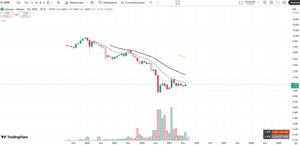 🪓 Сегежа. Конец года будет лучше? Выручка: 44,8 млрд руб. (-9% г/г) Чистый убыток: -21,8 млрд руб. (2,3х г/г) OIBDA: 2,6 млрд руб. (-55% г/г) Чистый долг / OIBDA: 22.0x Сегежа продолжает показывать малоприятные цифры для своих инвесторов. В начале июня сообщили о завершении допэмиссии и существенно поправили ситуацию с долгом компании. Чистый долг теперь равен 58,1 млрд снизившись в три раза. Начиная с третьего квартала можно будет увидеть некоторые улучшения в отчетности, как раз таки за счет снижение процентных расходов. ☝️ Однако, снижение OIBDA на 55% наводит панику видя соотношение чистый долг/OIBDA: 22.0x! Низкий цены на пиломатериалы который год да еще и крепкий рубль явно не идут на пользу компании. А вот переориентация на внутренний рынок и ослабление рубля уже будет драйвером роста. Дополнительно расшатывает нервы наличие задолженности перед кредитором из недружественной страны в размере 1,8 млрд руб., по которой нарушены ковенанты. Это создает дополнительный правовой и