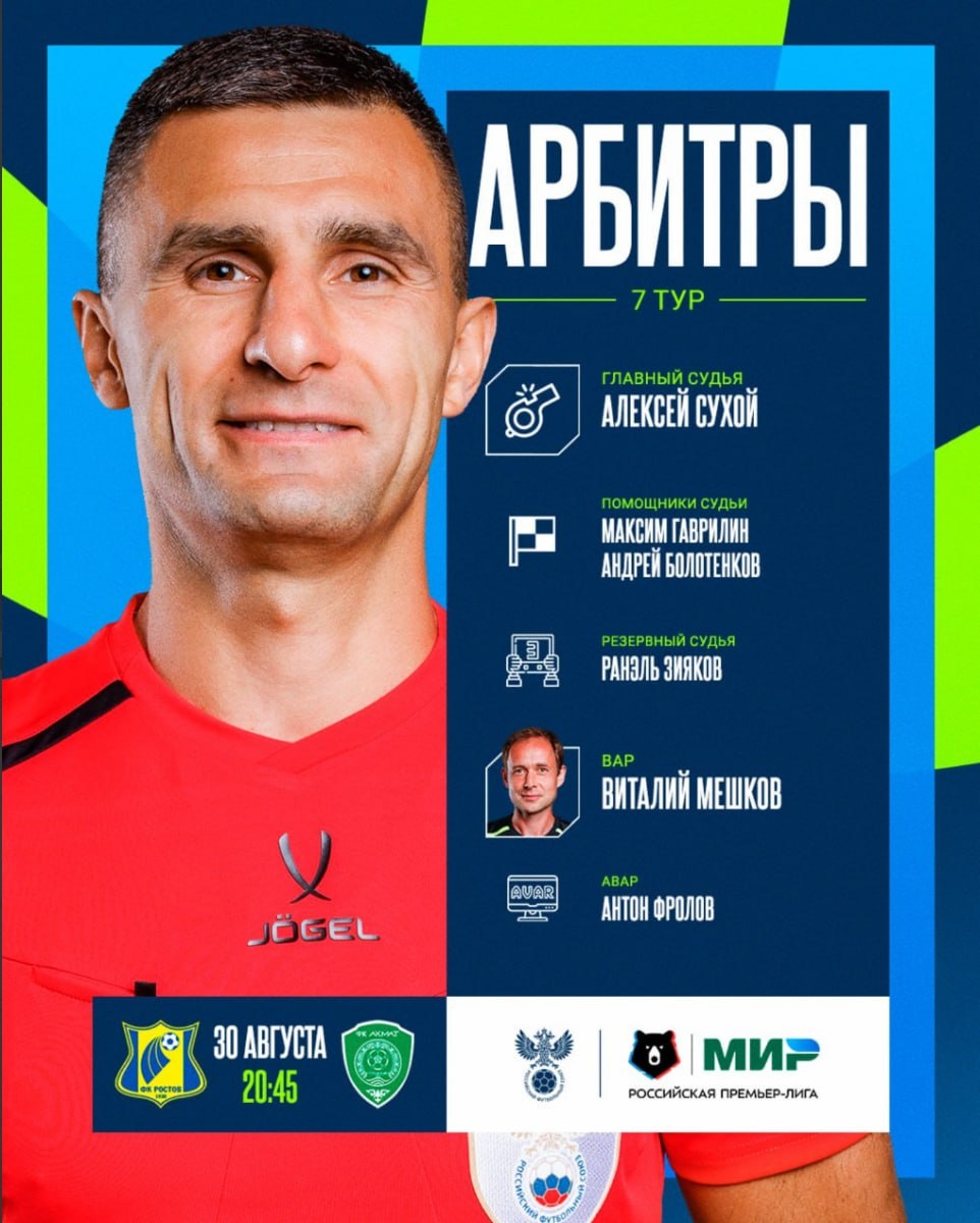 Лучший арбитр 7-го тура🔥 Алексей Сухой с оценкой 8,4