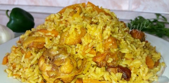 Для начала куриное мясо нарезаем небольшими кусочками одинакового размера, примерно 2х2 см, чтобы они прожарились равномерно. В казане или глубокой сковороде разогреваем масло или курдючный жир, выкладываем курицу и обжариваем на сильном огне, пока она не приобретёт аппетитную золотистую корочку. Как только мясо схватится и начнёт подрумяниваться, добавляем к нему лук, нарезанный небольшими кубиками. Перемешиваем и продолжаем жарить до тех пор, пока лук не станет мягким и слегка прозрачным, впитав аромат масла и курицы. Шаг 2.