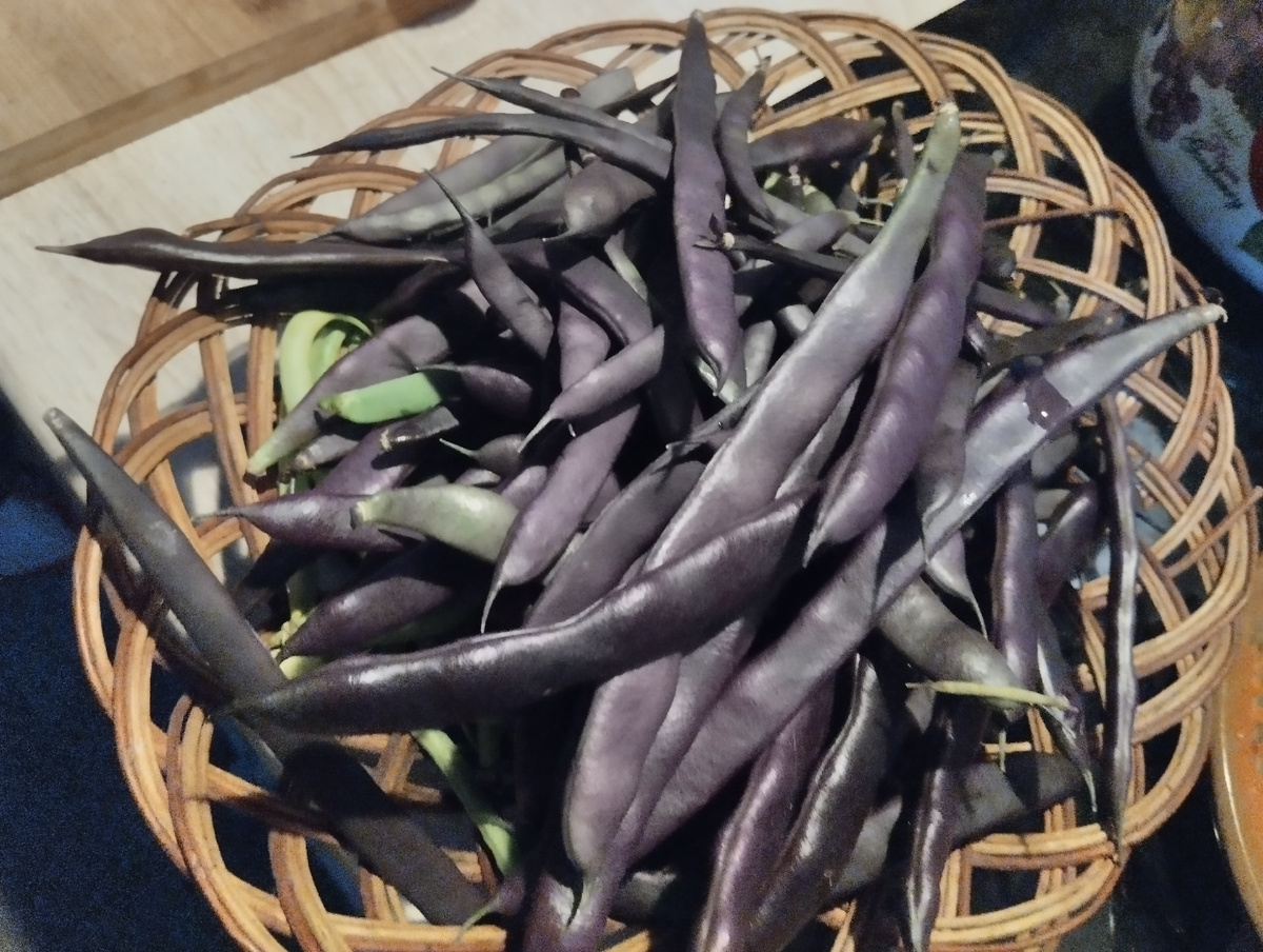 Привет, друзья! Вчера я покопалась днём в своем смешном огородике, Потом собрала фасоль. Получилось довольно много, я помыла ее и мелко порезала, затем расфасовала по пакетикам и убрала в морозилку. Зимой будет чем полакомиться. Также собрала огурцов довольно много в своей теплице-шкафу. Обычно я сорву сколько надо на салат, остальное не трогаю и так постепенно они нарастают, потом все излишки за раз собираю, обычно в выходной и солю их холодным способом, я как то давала свой рецепт. Там только огурцы, листья, соль и вода, без уксуса. Хранятся такие огурцы в холодильнике или погребе, у кого есть. С фасолью и огурцами провозилась больше часа, а ведь кто-то ещё закатки делает, там вообще туши свет, сколько энергии, времени и сил на это надо ... На обед у нас был лёгкий куриный суп, а на ужин ДМ приготовил мясо в нашей электропечке. Сначала замариновал мясо (не жирную свинину) с протертыми томатами, морковью и луком, бальзамическим уксусом, приправами из Абхазии, чес