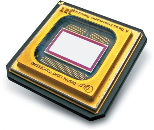 Первая в мире DMD микросхема или матрица была изобретена не так давно, в 1987 году. Ее создал ученый Ларри Хорнбек, работающий в компании DARPA, для решений различных задач Пентагона. Топ-менеджеры компании по достоинству оценили новую разработку и начали изучение коммерческого применения микросхемы. Спустя 7 лет после изобретения мир увидел первый DLP-проектор с применением матрицы. Специалисты со всего мира оценили новую технологию как очень перспективную и с того времени DLP вытеснило все прочие технологии на второй план на рынке. Патент на DMD-чип выкупила компания Texas Instruments и до сегодняшнего дня является собственником микросхем, поставляя их мировым производителям. Устройство микросхемы Матрица формируется на кремниевом кристалле КМОП-памяти. Она состоит из большого количества микрозеркал из алюминия, которые могут менять свой угол наклона. Таким образом, они могут отражать или поглощать свет, передавая на экран светлые и темные точки. Стандартная технология использования