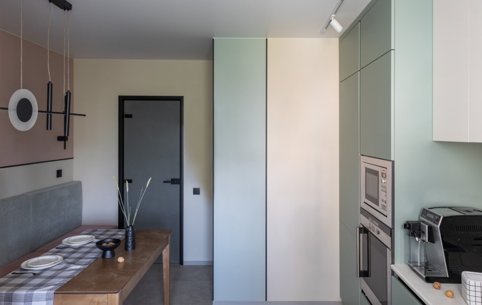 Интересный подбор цветов и графичные линии сделали эту квартиру стильной и нестандартной Место: Самара Метраж: 70 кв. м Год реализации: 2024 Комнаты: 3 Cанузлы: 1 Высота потолков: 2,5 м Бюджет: 6 млн рублей Дизайн: Екатерина Коталевская Фото: Лена Овинова К дизайнеру Екатерине Коталевской обратилась семья из четырех человек с просьбой организовать в их трехкомнатной квартире функциональное и интересное пространство. Заказчики желали расширить кухню, объединить санузел с ванной комнатой, а также перенести спальню на другую сторону квартиры, при этом разместив детские комнаты рядом друг с другом. Семья уже жила в этой квартире, и им пришлось на время ремонта съехать на дачу. Бюджет на все изменения был скромным, поэтому Екатерина решила использовать прием с колор-блоками и графическими линиями. Прихожую организовали как единый «теплый» объем, который контрастирует с более холодными оттенками в других комнатах. Теплые цвета также появляются в детской, но в остальном квартира оформлена в п