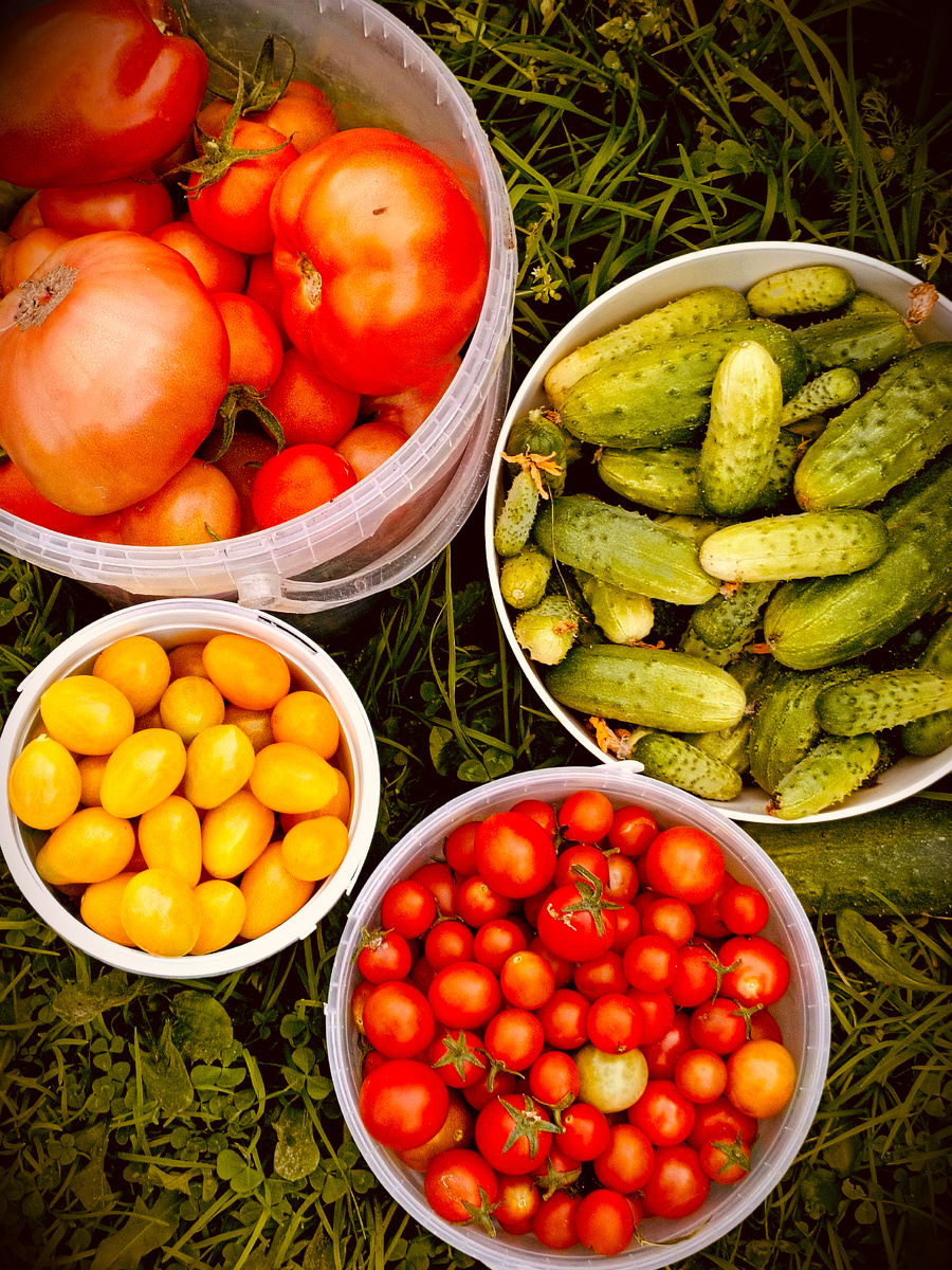 Лето словно художник постепенно убирает свои яркие краски, уступая место волшебной палитре осени. На огороде становится тише и просторнее. Картошка уже собрана, лук и чеснок тоже нашли свое место на хранении. Огурчики , словно прощаясь, дарят нам свой последний урожай, а помидорки наливаются спелостью. Даже баклажаны, которые поначалу вызывали сомнения, приятно удивили своим урожаем. А ещё сладкий перец, морковь, свекла и пекинская капуста - как же здорово есть все свое выращенное с заботой и любовью. Вчера дети приезжали на дачу с маленьким внуком. Ох и непоседа!!!🤗 Мы нагрузили им полные пакеты всяких вкусностей. А сегодня у нас день шашлыков. Дети снова приедут к нам и мы с удовольствием полакомимся вкусным мясом, наслаждаясь последними тёплыми деньками лета. Это будет настоящий праздник вкуса и семейного тепла. Ну , а дома с самого утра кипит работа. Маленькие огурчики и помидорчики черри укладываются в баночки. Запах свежих овощей наполняет воздух, создавая атмосферу уюта.