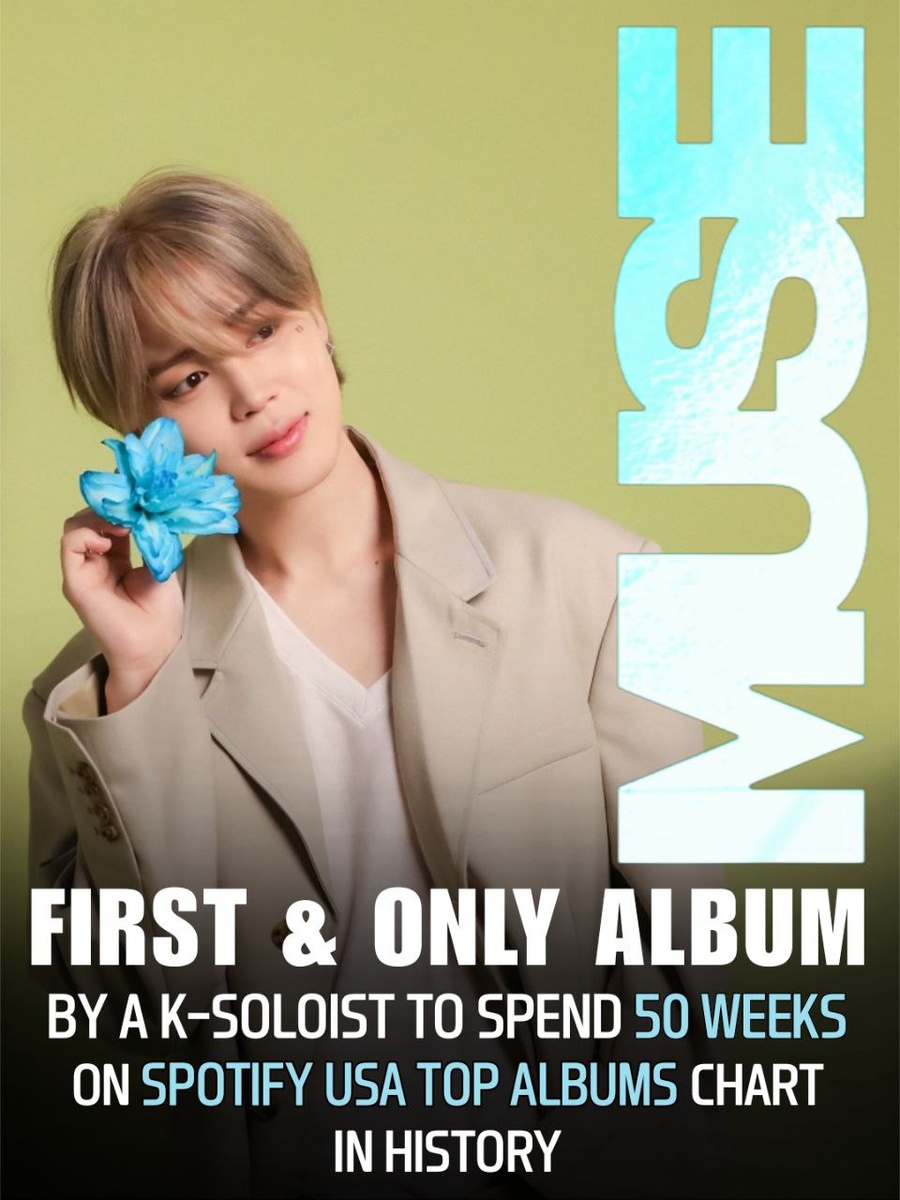 Альбом «MUSE» Чимина из BTS входит в чарт альбомов Spotify США уже 50-ю неделю подряд.