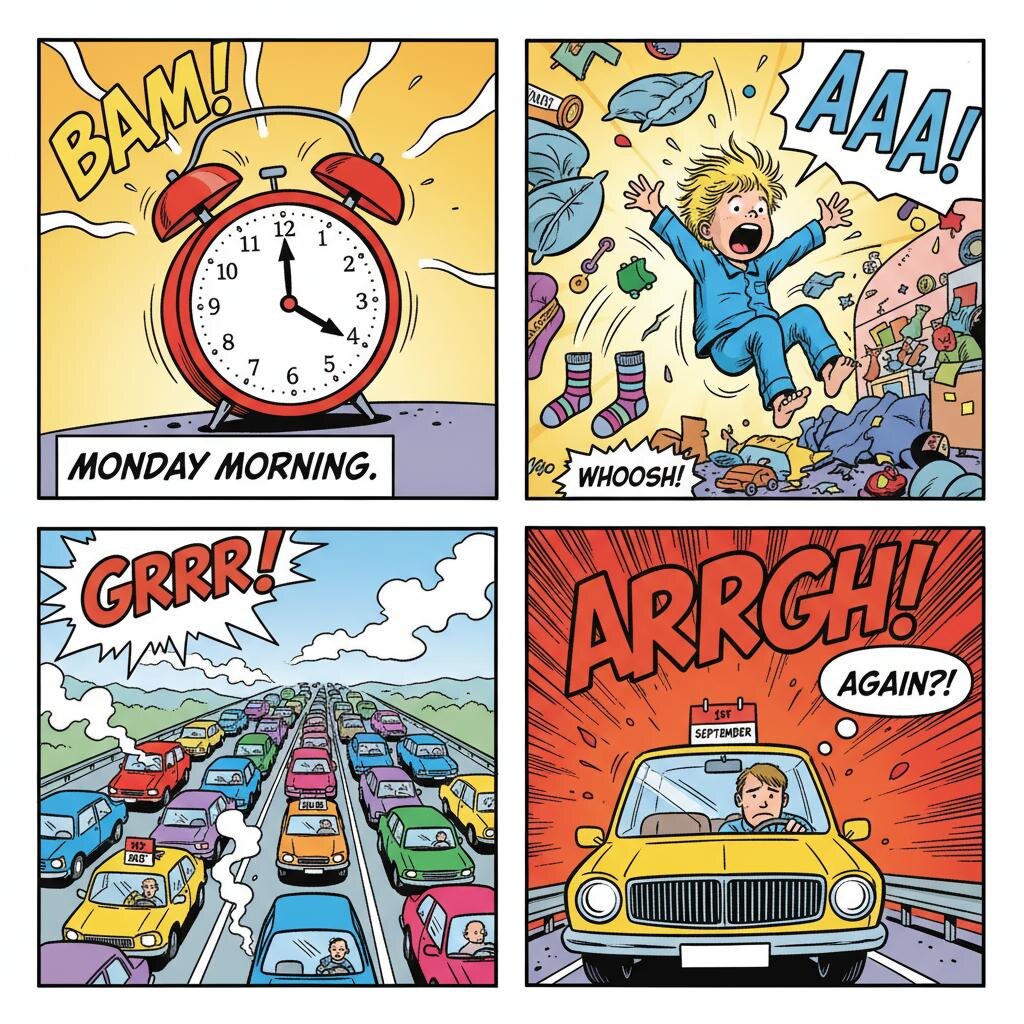 Будильник разрывается в истерике.Кофе в чашке пахнет не спасением, а предательством. Добро пожаловать в 1 сентября — день, когда реальность бьет учебником по голове, а пробки растут, как грибы после дождя. И нет, это не сон. Это тот самый день, когда даже у бездетных просыпается инстинкт «спрятаться под партой». Ах, это утро! Для родителей — квест под названием «Собери ребёнка в школу и не сойди с ума». Уровень сложности: «невозможный». Нужно найти тетрадь, потерянную ещё в мае, уговорить надеть брюки, которые «кусаются», и сделать бутерброд, который всё равно вернётся домой в рюкзаке нетронутым. А ещё успеть выключить утюг, который уже второй час жарит воздух — кажется, он злее тебя на этот день. Для тех, кто детей не заводил (умники!), 1 сентября — тоже не подарок. Пробки. Те самые, что появляются из ниоткуда, чтобы напомнить: лето кончилось. Твоя машина превращается в капсулу времени, где ты можешь подумать о вечном. Или просто проклясть всё на свете. Всё просто: 1 сентября — э
