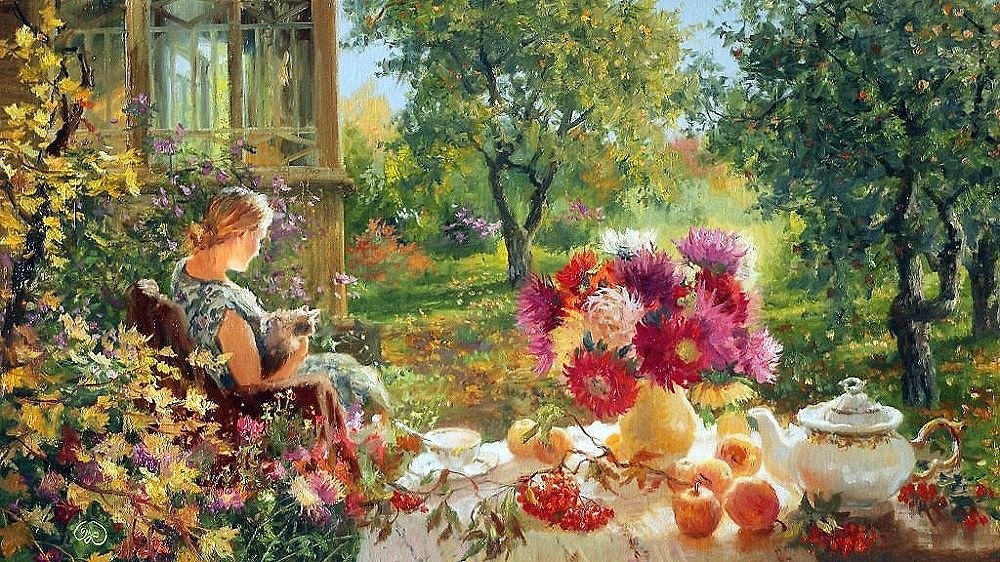 🧠 Из года в год, из века в век, любую побеждая трудность, живёт #Бывалый человек в загашнике #НароднаяМудрость 💨 В этот день отмечался южный ветер — тепляк. И в спелах, одабривая его, кивали на поле: «Хороши нынче овсы стоят». ✅ Значит урожай хороший будет. 🌱 Когда тепляк распускал туманы — то в поле с косами по утру выходили. ☀ Бабье лето оно же золотая осень — тёплая и сухая погода в сентябре - октябре (год на год не приходится). ❗ В народных традициях Бабье лето отождествлялось с началом осени с 1 сентября (вот только по новому или старому стилю - гадать самим).. 🖼 Владимир Жданов. На даче ✅ Бабье лето ненастно — осень сухая, бабье лето сухое — осень мокрая