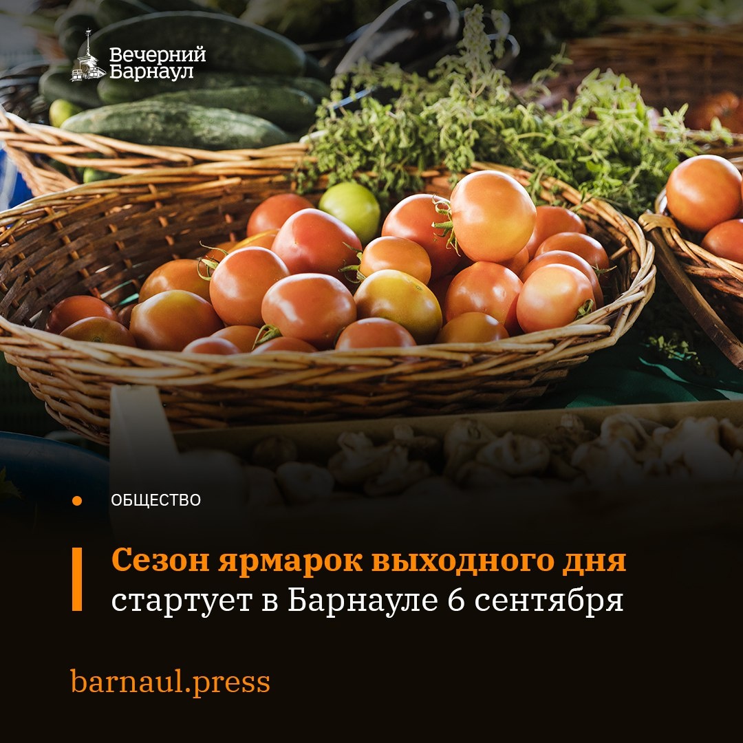 В субботу, 6 сентября, на территории Барнаула пройдут ярмарки выходного дня. Они откроют осенний ярмарочный сезон. Площадки развернутся в каждом районе города. Там свою продукцию представят предприятия торговли и общественного питания, а также фермеры региона. Посетить ярмарки можно будет с 10:00 до 14:00 по адресам: 🔸проспект Ленина, 71; 🔸улица Энтузиастов, 12в (Парк спорта Алексея Смертина); 🔸площадь Народная (пересечение улиц Георгия Исакова и Попова); 🔸улица Германа Титова, 9 (сквер имени Германа Титова); 🔸проспект Красноармейский, 64 (парковка у ТЦ «Майский»); 🔸улица Чайковского, 21а (посёлок Южный). Фото: freepik.com @barnaul