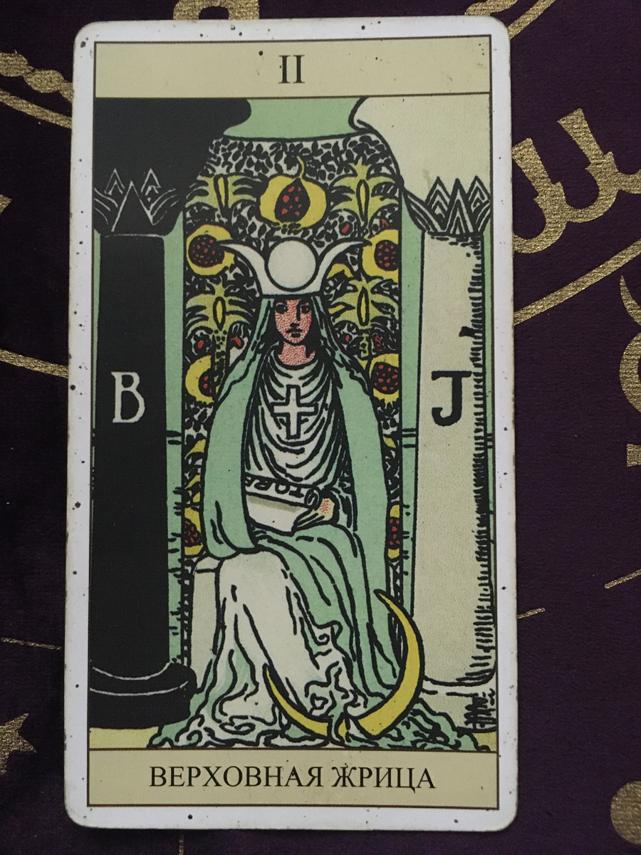 Мы прошли путь от чистого потенциала Дурака к активному воплощению Мага. Но что, если сила заключается не в действии, а в принятии? Не в словах, а в молчании? Не в свете, а в тайне? Встречайте самую загадочную фигуру колоды — Верховную Жрицу. Между Столпами Познания Она сидит между черным столпом «Боаз» (Суровость, пассивность, тьма) и белым столпом «Яхин» (Милосердие, активность, свет). У ее ног — полумесяц, на груди — крест, а на коленях она держит свиток Торы, частично скрытый складками ее одеяний. За ней — вуаль, усыпанная гранатами, скрывающая бескрайние воды бессознательного. Она не смотрит на нас — ее взгляд направлен внутрь себя. Верховная Жрица — это полная противоположность Магу. Если Маг активен, экстравертен и говорит: «Я есмь!», то Жрица пассивна, интровертна и знает молчанием. Она — врата в мир интуиции, подсознания и тайного знания, которое нельзя получить через учебу — только через откровение. Архетип Юнга: Анима / Архетип Непознаваемого Верховная Жрица — это чистейшее