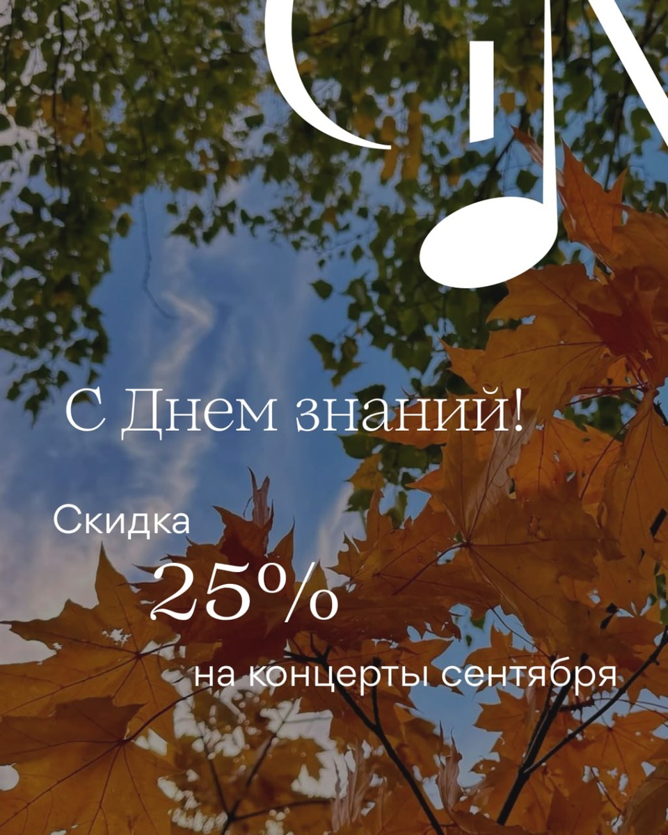 Сегодня мы встречаем осень и отмечаем День Знаний🍁 С началом осени появляется ощущение нового нового этапа в жизни. Не важно сколько лет назад мы закончили школу и университет — привычка учиться новому остается с нами всегда. В честь дня знаний мы дарим подписчикам скидку 25% на все концерты сентября! Промокод TG25 действует до 23:59 📍 Галерея Искусств Зураба Церетели 13.09 | 17:00 — «Шедевры КИНОмузыки» Людовико Эйнауди. Ханс Циммер. Макс Рихтер 13.09 | 20:00 — «Шедевры КИНОмузыки» Людовико Эйнауди. Ханс Циммер. Макс Рихтер 📍Московский планетарий 18.09 | 20:00 — «Вселенная Ханса Циммера» 📍Соборная палата 24.09 | 19:00 — Антонио Вивальди. «Времена года». Шедевры эпохи барокко 🎟 Афиша и билеты на сайте: www.grand-musica.ru #афишамосква #grandmusica #кудасходитьмосква #классика #неоклассика