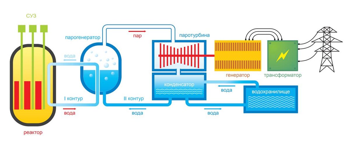 Что такое ВВЭР и как он работает? ВВЭР (Водо-водяной энергетический реактор) — это советский и российский тип корпусного реактора с водой под давлением, использующий обычную воду в качестве теплоносителя и замедлителя нейтронов для производства электроэнергии. Этот тип реактора является одним из наиболее распространённых в мире и эквивалентен американским реакторам класса PWR. В реакторе ВВЭР происходит управляемая цепная ядерная реакция, которая нагревает воду в первом контуре до высокой температуры, но без кипения. Затем эта горячая вода передает тепло воде второго контура, которая превращается в пар и вращает турбину, вырабатывая электроэнергию. Серия ВВЭР была разработана в СССР на базе реакторных установок для атомных подводных лодок. Первые реакторы ВВЭР были введены в эксплуатацию в 1960-х годах, а современные модификации (например, ВВЭР-1200) соответствуют стандартам поколения III+. (Про поколения реакторов) #ВВЭР #реактор #атомнаяэнергетика #АЭС
