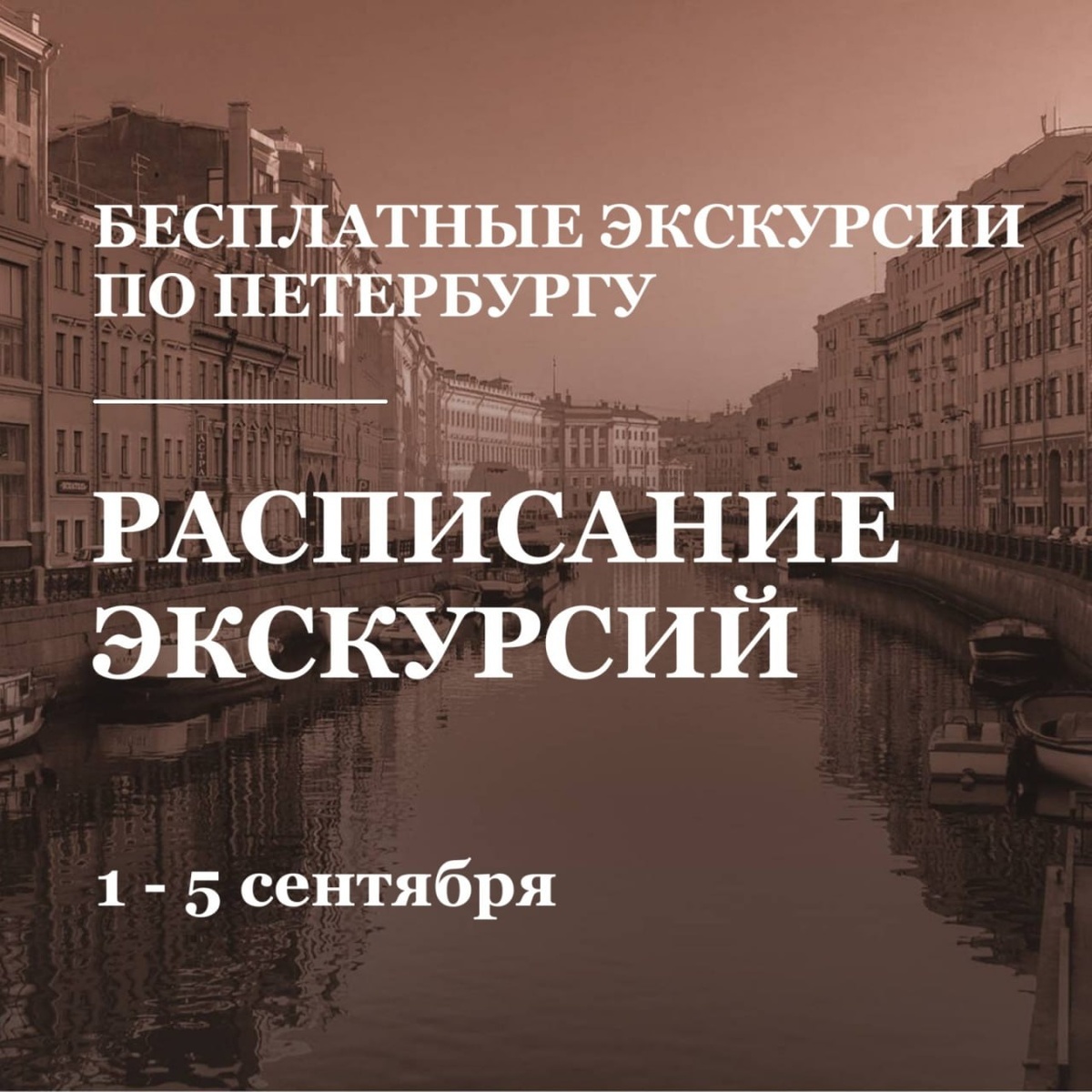 Друзья, расписание экскурсий с 1 сентября по 5 сентября 🚶🏼♂️➡️ПЕШИЕ ЭКСКУРСИИ: Запись — > https://clck.ru/3NwaZe 🔖1 сентября (понедельник) 💰Платные: 13:00 — 14:30 "Музей-квартира семьи Бенуа (с мини-концертом на арфе)" 16:00 — 17:30 "Штаб-квартира русского географического общества" 🔖2 сентября (вторник) ⭐️Бесплатные: 14:00 — 15:30 "Удивительные истории Вознесенского проспекта" 18:00 — 20:00 "Задворки княжеских мазанок. Улица Галерная" 18:00 — 19:30 "Павловск — это не только Павловский парк" 19:00 — 21:00 "Между цветными мостами" 💰Платные: 13:00 — 14:30 "Музей-квартира семьи Бенуа (с мини-концертом на арфе)" 🔖3 сентября (среда) ⭐️Бесплатные: 12:00 — 13:30 "Как стать миллионером и закончить жизнь в чемодане" 12:30 — 14:30 "Последний реформатор. Петербург Столыпина" 14:00 — 15:30 "Ленинградская «фабрика грез». Вокруг Ленфильма" 14:00 — 15:30 "История одной версты Петергофской дороги. Прогулка по проспекту Стачек" 16:00 — 18:00 "В шаге от Невского проспекта — знакомая и незн
