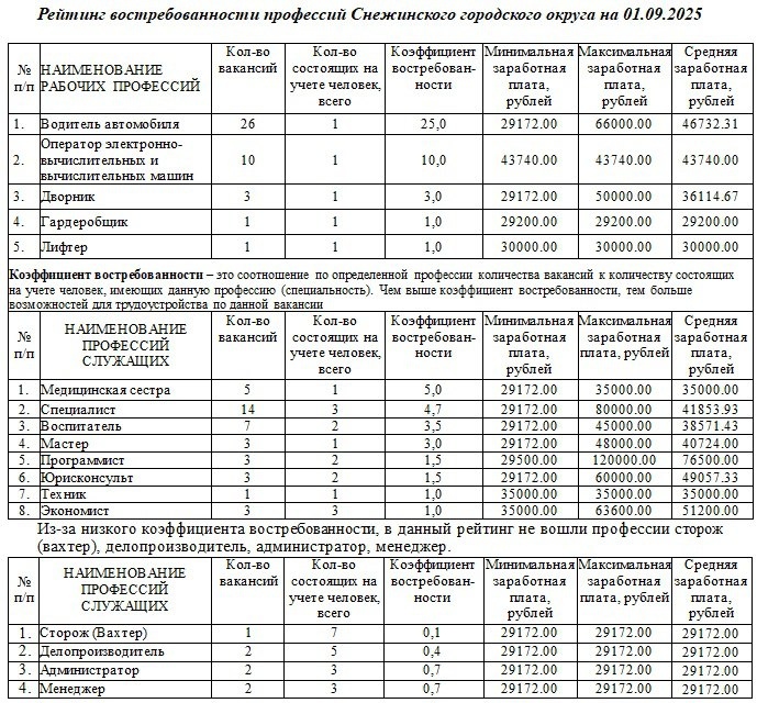 Рейтинг востребованных профессий СГО на 1 сентября За предоставление услуги «Информирование о положении на рынку труда Челябинской области» отвечает Областное казённое учреждение Центр занятости населения города Снежинска. Телефон: 8(35146)92861. 👉 Типичный Снежинск