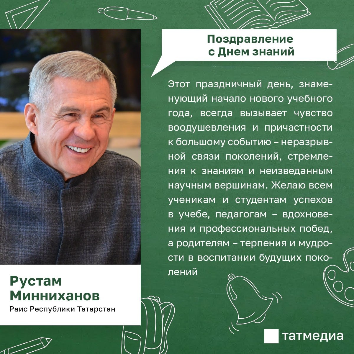 🔔🍁Рустам Минниханов поздравил татарстанцев с Днем знаний