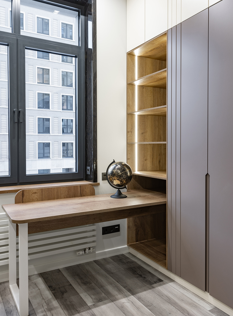 Шкафы «Тринити Геометрия» от фабрики Rondini идеально соответствуют этим требованиям. Их дизайн построен на сочетании спокойных оттенков и тёплой текстуры дерева, благодаря чему мебель становится универсальным фоном для интерьера. А значит, сама комната может легко трансформироваться в зависимости от возраста ребёнка, его интересов и предпочтений.