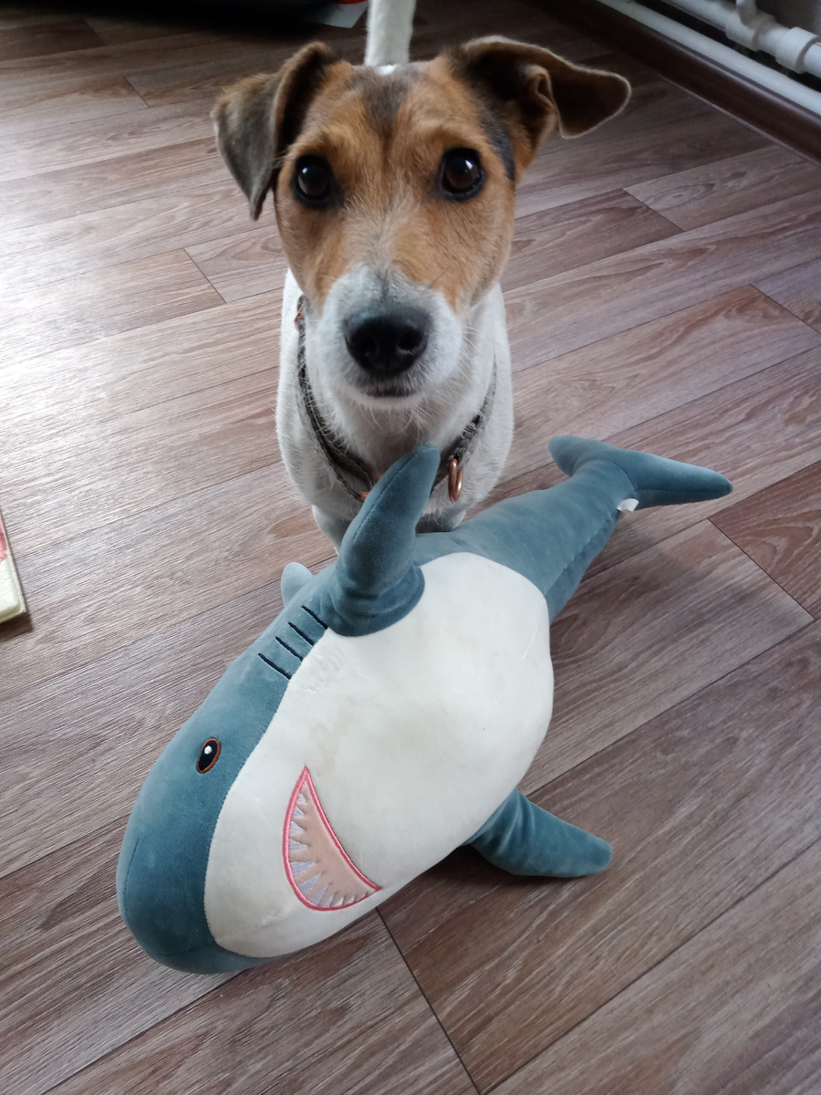 Собака с утра в честь праздника, видимо, добыла акулу и пыталась ее разделать прям на полу.