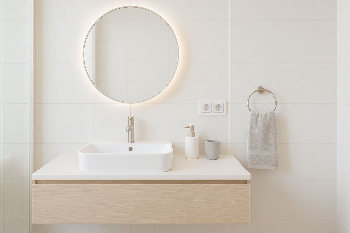 Розетки в ванной абсолютно безопасны и невероятно удобны, но только при грамотном подходе. Ведь согласитесь, пользоваться феном в коридоре или сушить волосы в комнате - не самый практичный вариант. Давайте разберемся, как совместить комфорт и безопасность, чтобы электричество и вода никогда не встретились без вашего разрешения. Запомните главное правило: вода и электричество совместимы только при строгом соблюдении дистанции. Согласно ГОСТу, ванная комната делится на зоны: Здесь нет строгих норм, но есть проверенные временем рекомендации: Важный совет: не опускайтесь ниже 30-40 см от пола. Помните о возможных протечках воды! Самая правильная розетка не будет безопасной без соответствующей защиты в электрощите. Обязательно устанавливайте УЗО или дифавтомат с током утечки не более 30 мА - это ваш главный защитник. Помните: стоимость качественного УЗО несравнима с ценой последствий его отсутствия. Забудьте о обычных комнатных розетках! Только влагозащищенные модели со степенью защиты не н