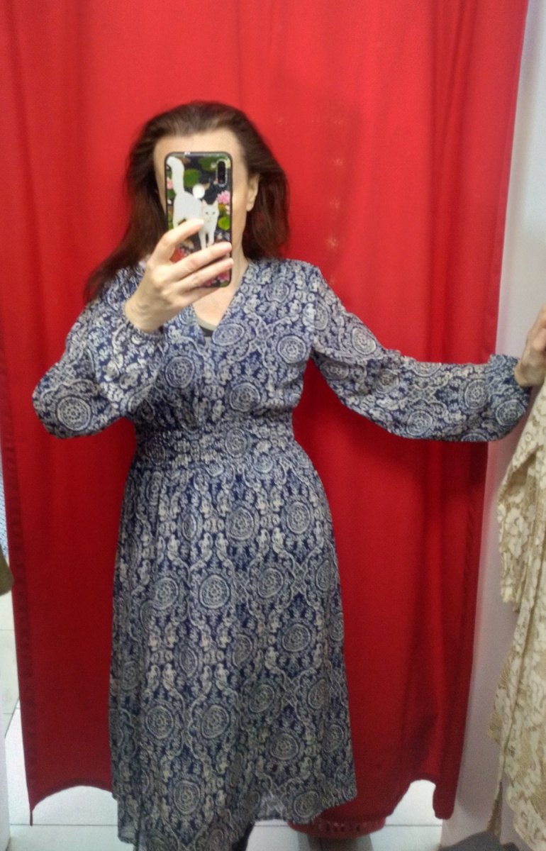 Здравствуйте, москвичи, кто читал, что могут ввести оплату за каждый километр пробега автомобиля? Я предлагаю пойти дальше и навесить на каждого пешехода шагомер. А то ходют тут всякие бесплатно. Не дело это. А если такая прелесть прокатит в Москве, то и до других городов доберутся. Продолжу обзор из секонда, цена 590 за кг и ещё скидка 20%. Начну с платья, которое я купила. Зачем? Не знаю, так, просто так)). Хотя у него такие пышные рукава, моё любимое сочетание синего и белого, летящая юбка, видна талия и запах на груди зашит, то есть не надо мудрить с булавкой или зашивать самой, а ещё оно на мой рост село прекрасно. Уж поверьте, что для вещей с талией это бывает не часто. Actuelle — итальянский бренд женской одежды, основанный в 1991 году. Подкладка из вискозы, ткань с рисунком из синтетики. Цена 120 рублей. Тоже платье понравилось, но в талии вшита широкая резинка и она не регулируется. Это я не одобряю(( Вискоза. Красивое Кружевное платье на подкладке. К такому платью должен