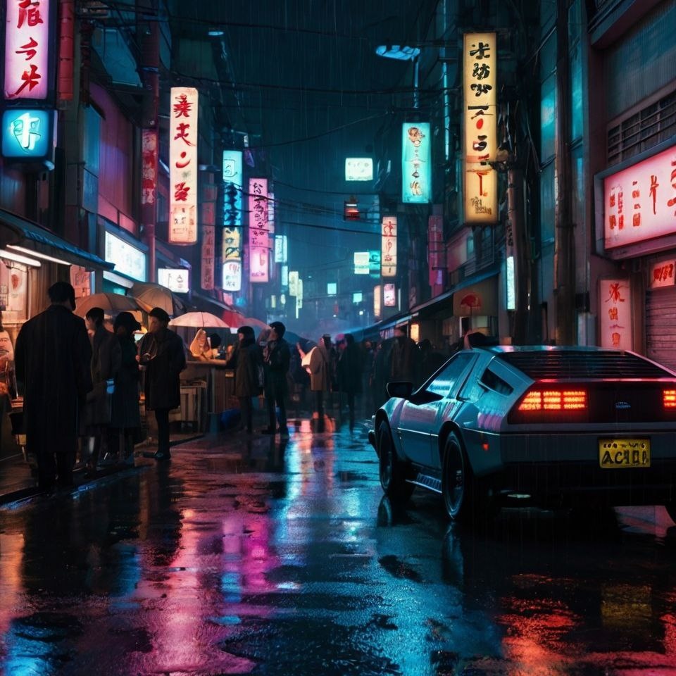 ⚜Классическая, но всегда эффектная киберпанк-сцена, полная жизни и деталей. 🔎Промпт: cyberpunk scene, a crowded street in Neo-Kyoto at night, flying cars, holographic advertisements, diverse cyborgs and humans, rain, neon reflections, cinematic, wide shot, blade runner aesthetic #киберпанк #стиль #неон @photoneuronkaai