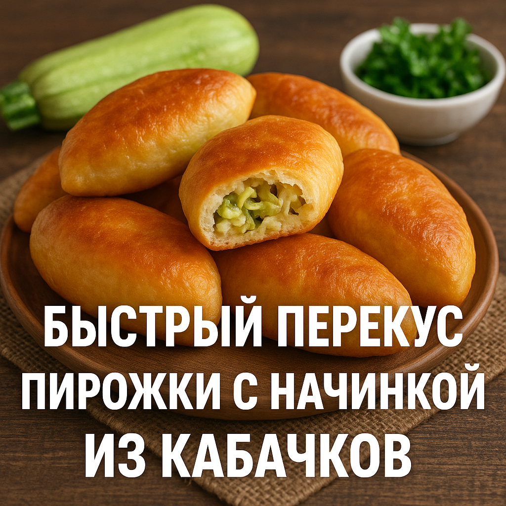 Быстрый перекус: пирожки с начинкой из кабачков Лёгкие и ароматные кабачковые пирожки — идеальный вариант для тех, кто хочет вкусно перекусить без лишних хлопот. Благодаря простому тесту на кефире и сочной овощной начинке это блюдо готовится всего за полчаса, а готовые пирожки прекрасно вписываются в любой рацион — от семейного обеда до домашней вечеринки. ✏️ Почему стоит выбрать именно кабачки? ⦁ Доступность. Летом кабачки стоят недорого, а в сезон их изобилие позволяет экспериментировать. ⦁ Лёгкость и нежность. В готовом виде кабачковая начинка остаётся сочной, не «втягивает» много масла и не перевешивает вкус теста. ⦁ Польза. Кабачки богаты клетчаткой и витаминами, они помогают регулировать пищеварение и надолго дарят чувство сытости. ✏️ Ингредиенты (на 12 пирожков) Для теста ⦁ 300 мл кефира (или натурального йогурта без добавок) ⦁ 1 яйцо ⦁ 1 ч. л. соли ⦁ ½ ч. л. соды (гасящейся уксусом или лимонным соком) ⦁ 2 ст. л. растительного масла ⦁ 350–380 г муки Для начинки ⦁ 1 средний кабач